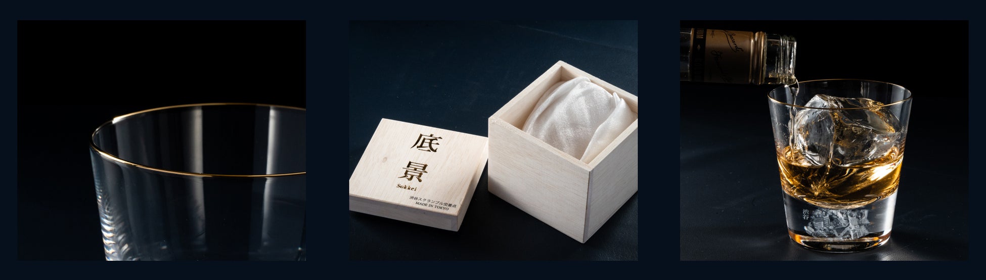 薄くて軽く、美しい。透明度も高い。職人がひとつひとつ手作業で作り上げる、洗練された造形に彫り込まれた渋谷のスクランブル交差点。TAJIMA GLASSの高い品質と、シーティーアイの技術力(※)が可能にしたロックグラス。それが「底景(SOKKEI)」です。