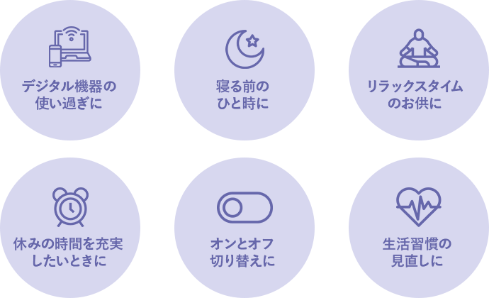 デジタルデトックスなどの手法を習慣に取り入れ、PC・スマホなどのデジタル機器から離れてリラックスタイムを送ることが重要です。テクノロジーのメリットを享受しながらもデジタル機器に翻弄されず健全な日常生活のバランスを取る考え方としてデジタルウェルビーイングに着目しました。