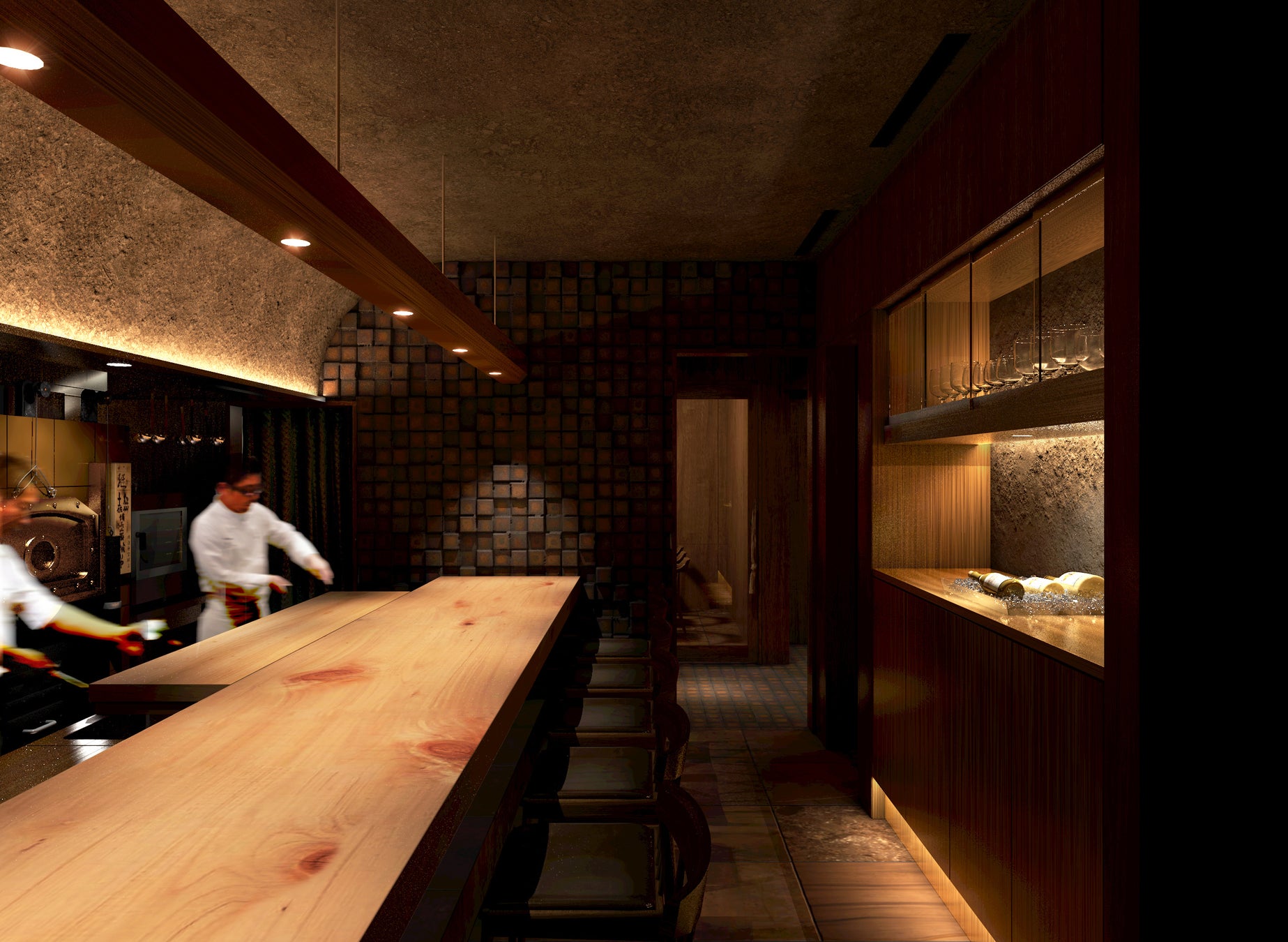・伊勢市左官職人による“伊勢磨き” 「伊勢 福多亭」内カウンター内に設置