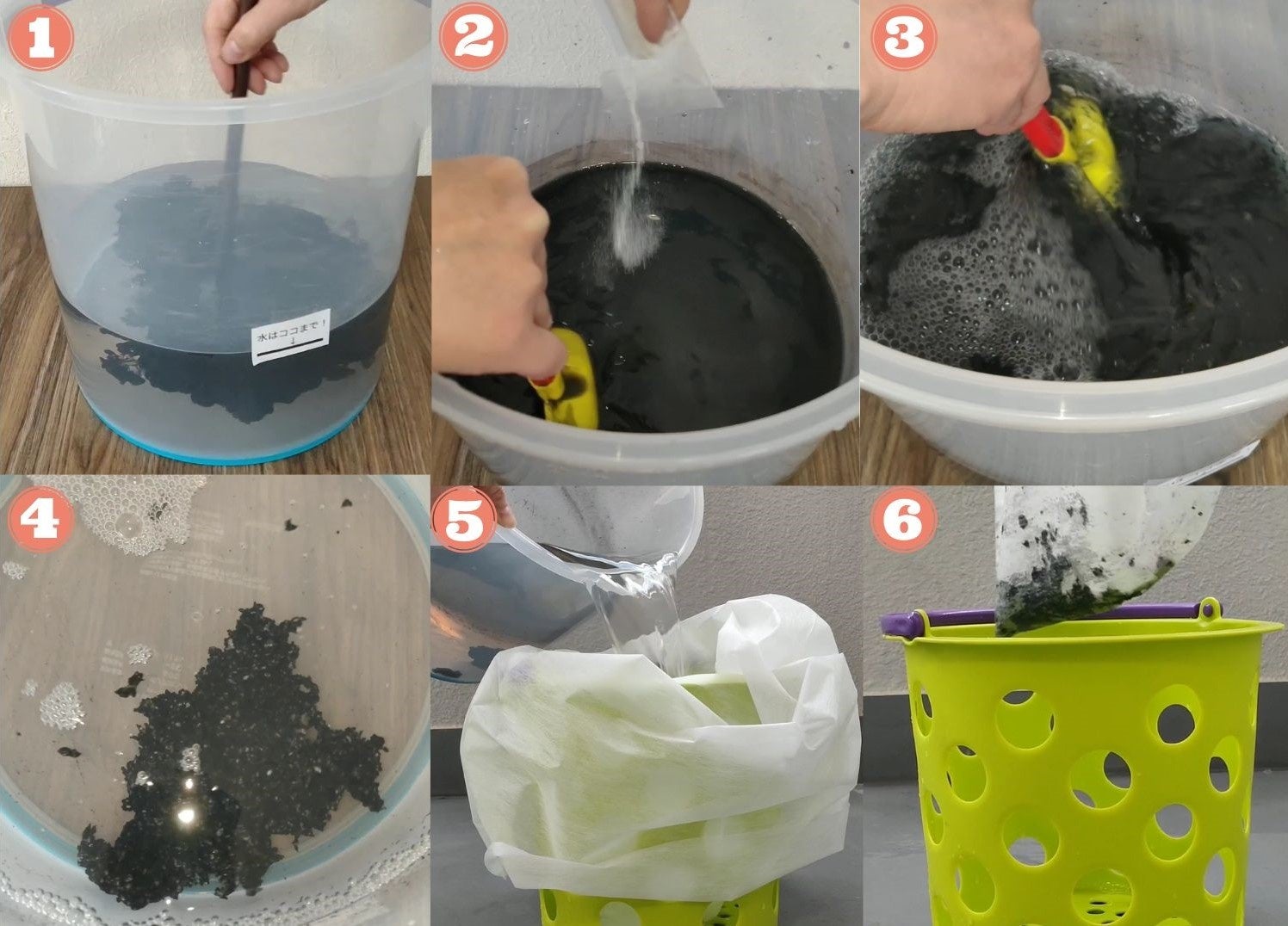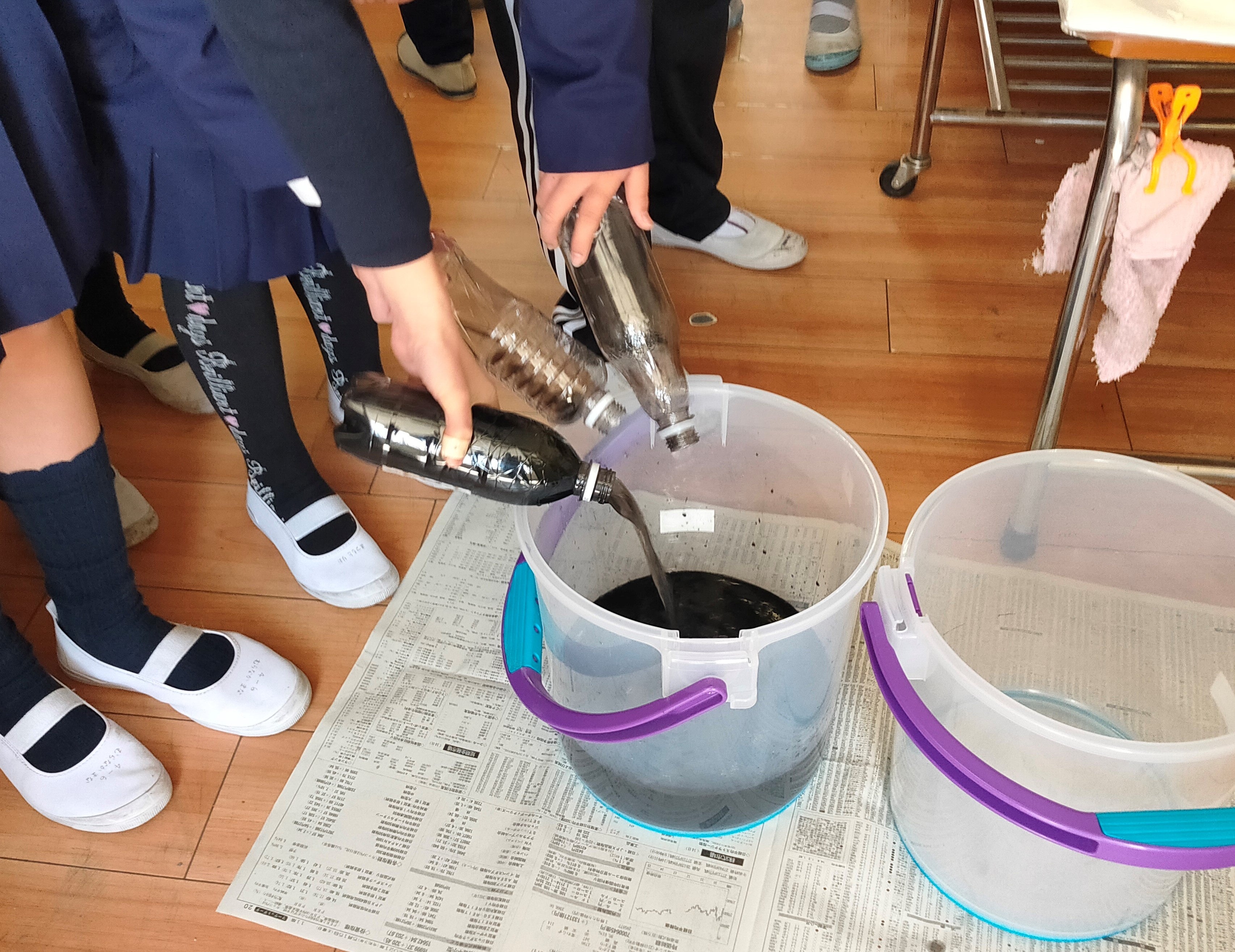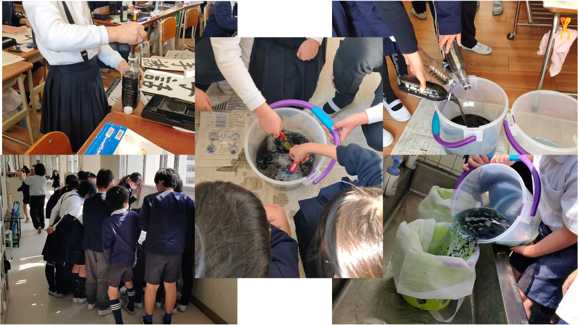 墨汁で洗面所や服が汚れない。学校や家庭で簡単に汚れた水を綺麗にできる。排水処理セット『くるくる水クリン』『シャカシャカ水クリン』を発売!