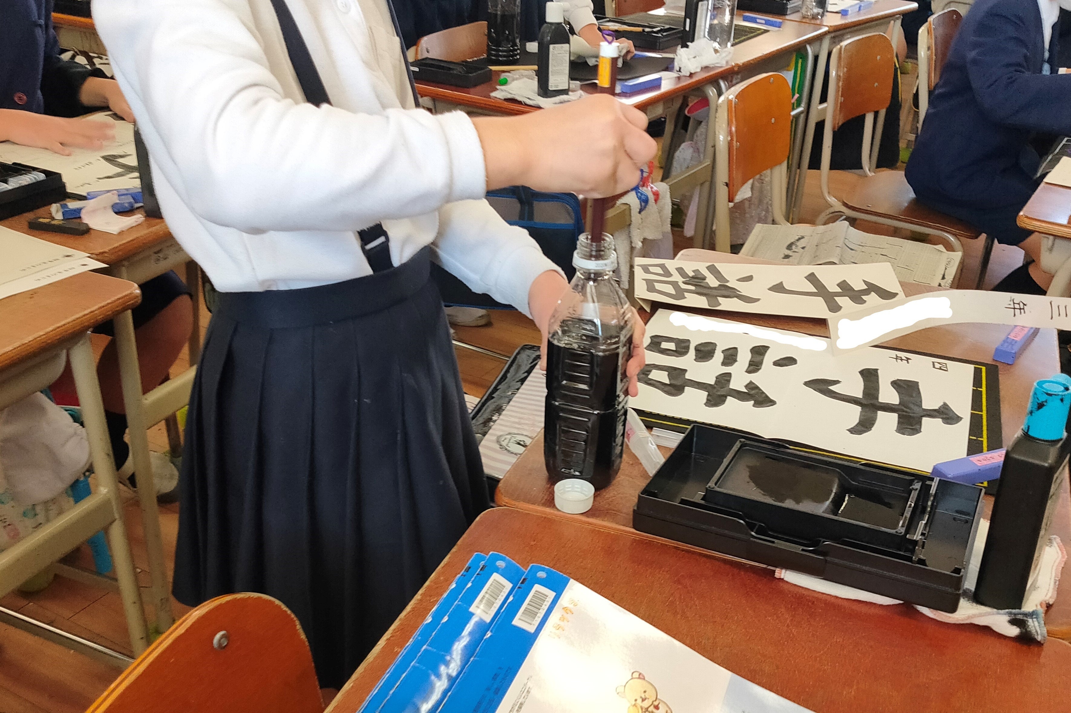 筆などを洗った水を溜める、または貯めた水で筆を洗う(水を入れたペットボトルで筆を洗う)。