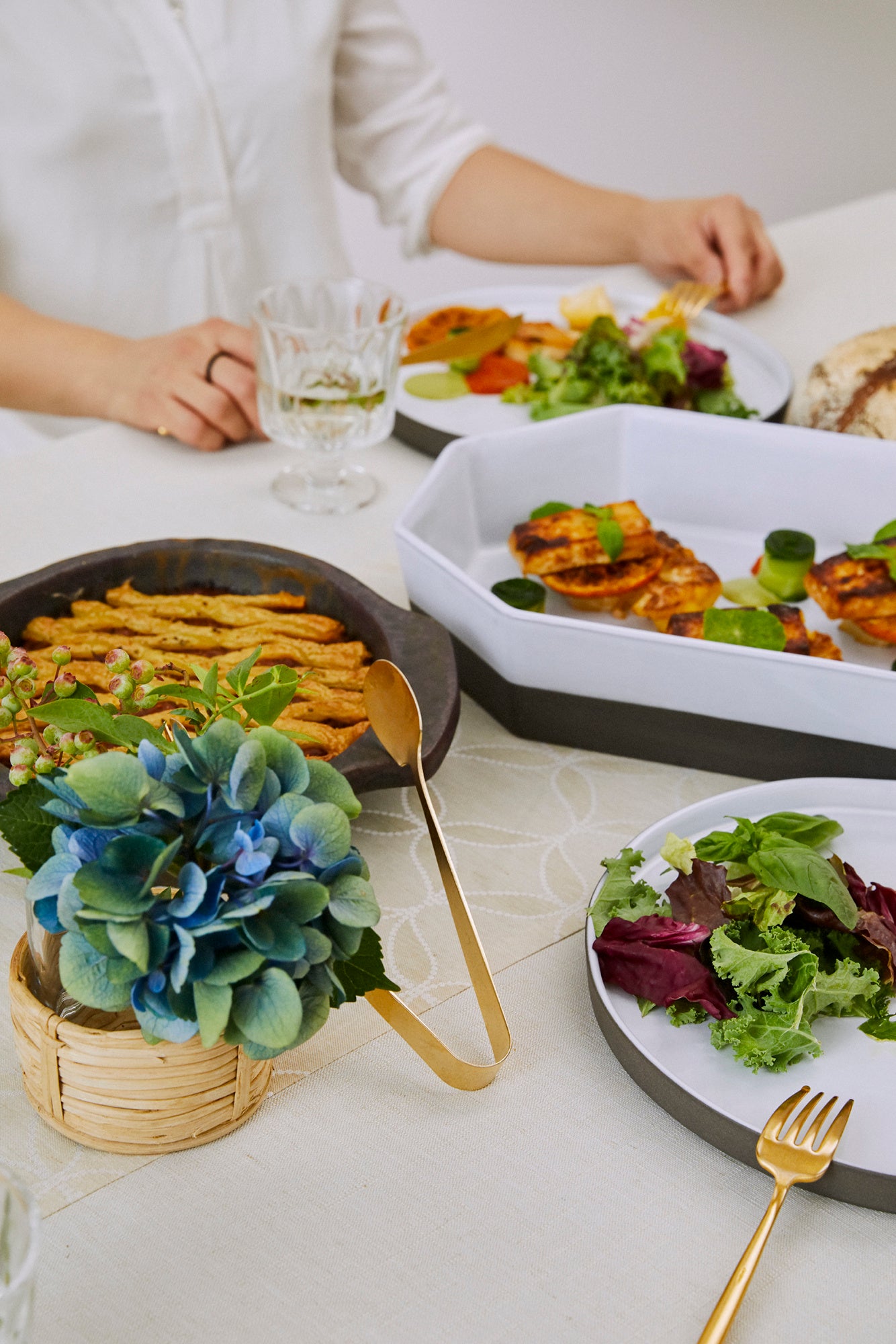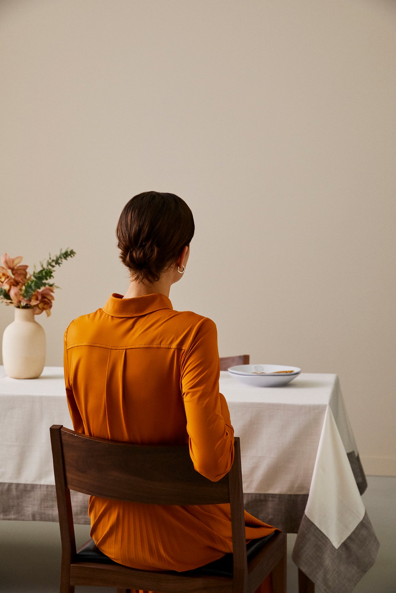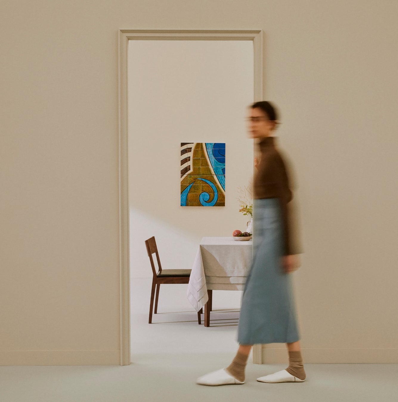 ファーストコレクションは2022年10月6日よりeterbleの公式オンラインストアにて販売を開始します。ファーストコレクションは、クリエイティブ・ディレクターの葉山泰子がNY在住中に触れたスペインやポルトガルのアートからインスパイアされ、自立した女性のライフスタイルをイメージして作られました。大西洋に落ちる美しくもなぜか少し物哀しいサンセットの色彩や、その夕陽を浴びた建築物と草花たちの陰影が、クロスの少し褪せた色使いや幾何学模様で表現されています。今コレクションのシグニチャーモデルでもある「eterble fabric」を使用した3段タックのテーブルクロスは、一見シンプルでありながらそれだけで魅せることができる独立性を追求。気の利いた女性が想う遊び心とちょっとした特別感の表現を目指しました。厳選されたサステナブルコットンを使用した切り替えしのあるテーブルクロスでは、シックで様々なシーンに馴染む印象を持たせながらさりげないブロードの刺繍を施してあり、ポルトガルのサンセットビーチの水面に映る光の輝きをイメージしています。記念日、友人を招いてのホームパーティや、日常を少し特別なものにするために、eterbleのテーブルクロスは食卓を満ち足りた風景へと描き、食卓からあなたを新しい世界へと誘います。