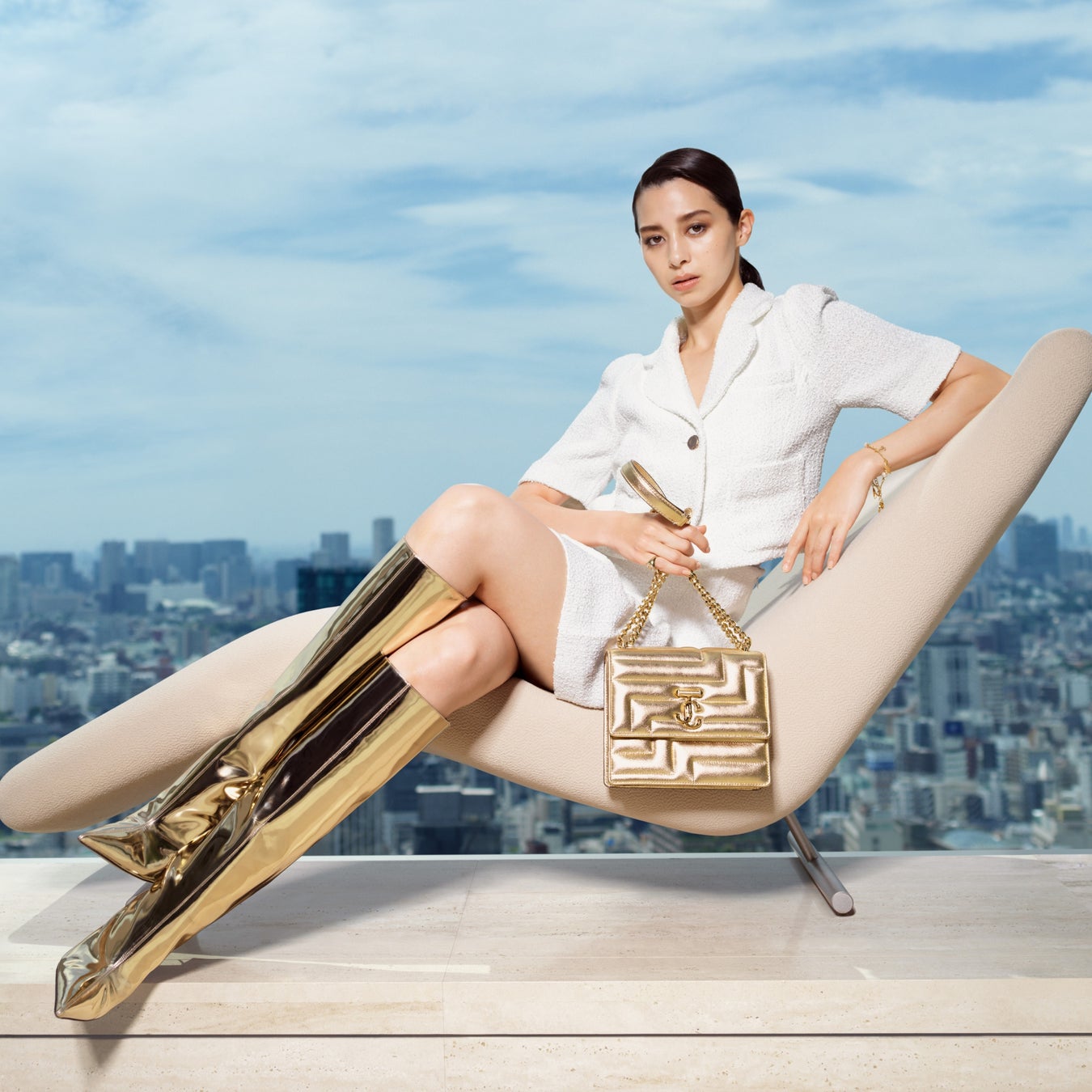 中条あやみが、ジミー チュウの「フレンド オブ ハウス」に就任。新作バッグ「ヴァレンヌ アヴェニュー」を手に力強く、グラマラスなポーズでブランドのミューズを表現