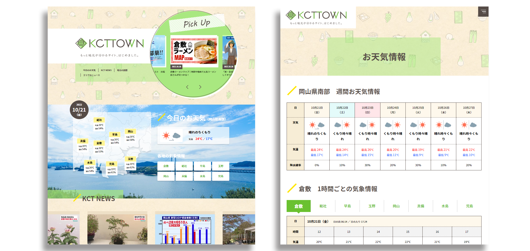 株式会社倉敷ケーブルテレビ(本社:岡山県倉敷市、代表取締役社長:劔持成利)は、岡山県倉敷市、総社市、玉野市、早島町を中心としたエリアに特化した地域情報ポータルサイト「KCTタウン」(https://town.kct.co.jp/)をオープンいたしました。