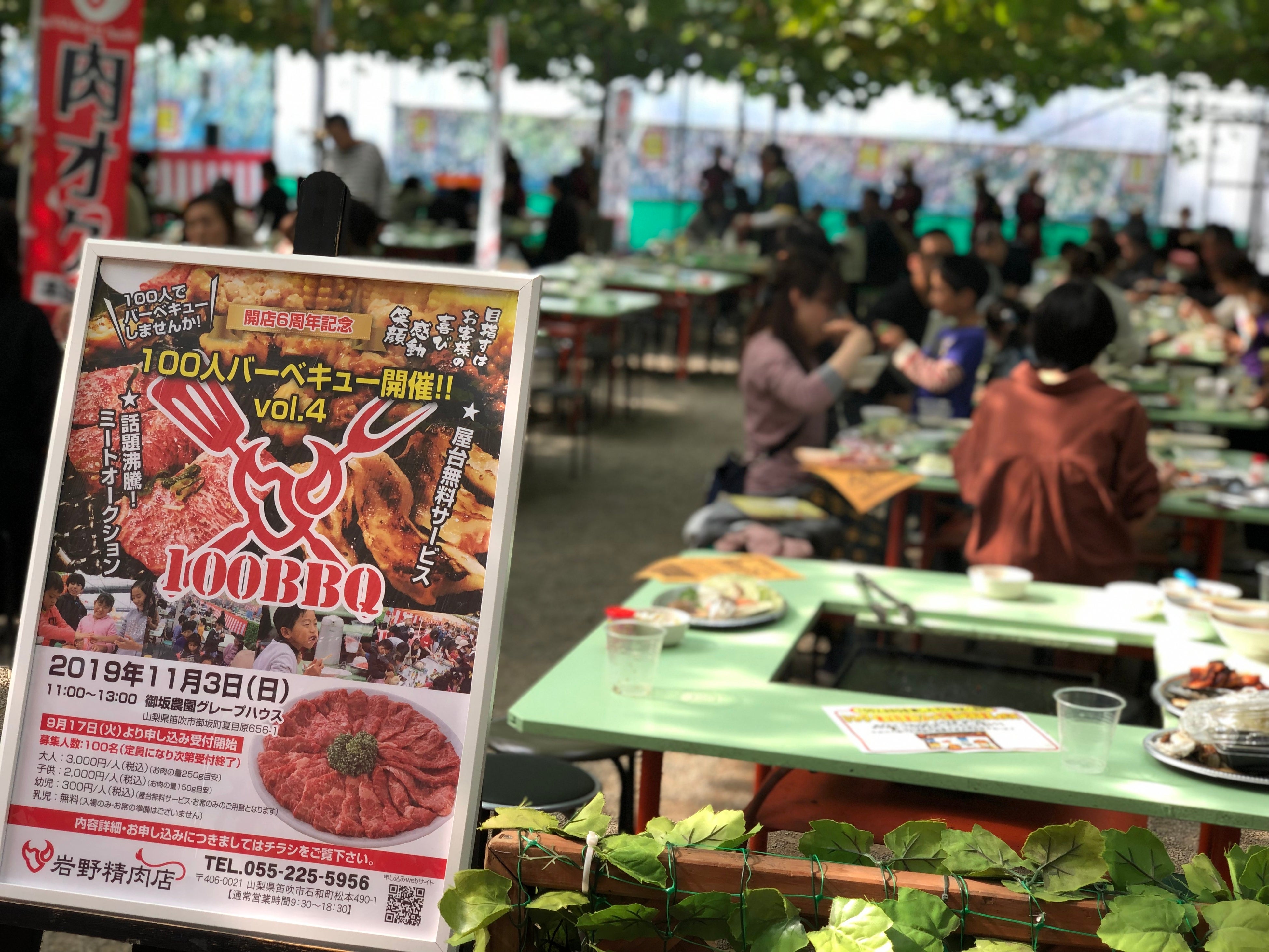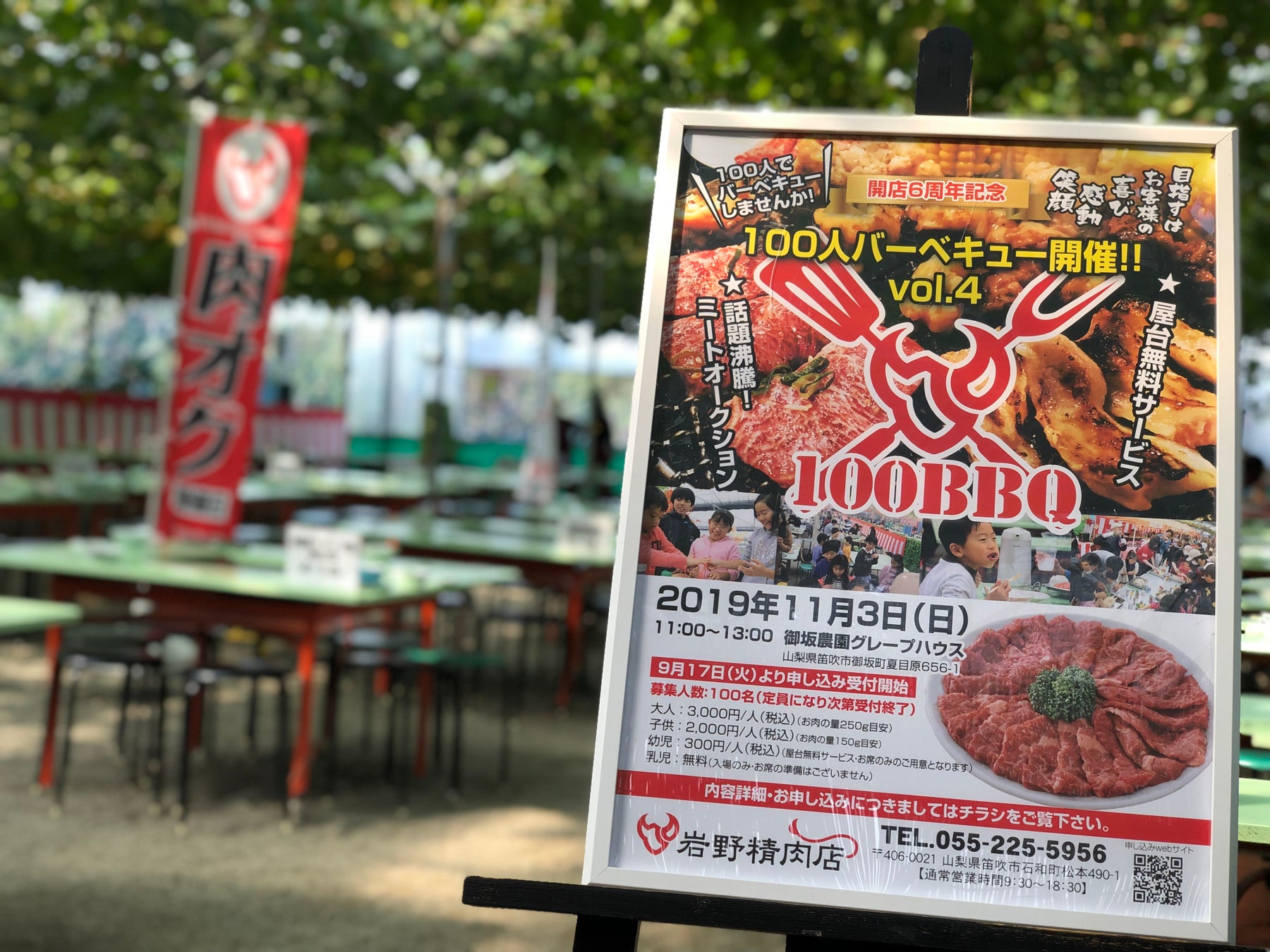 創業71年、山梨県笛吹市に店を構える”岩野精肉店”は、直営小売店舗開業10周年を記念して、2年ぶりに第5回100人バーベキューを2022年11月13日に山梨県笛吹市の御坂農園グレープハウスにて開催致します。