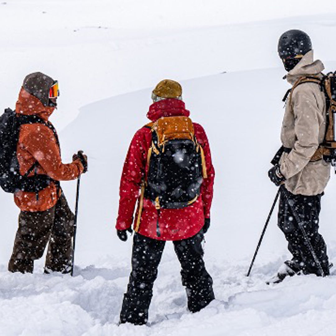 BIBパンツは雪が深い日はウエストを調整することにより侵入を防ぎます。JKTと同じ2.5レイヤー構造は防水性と透湿性を備えながら軽量化を実現。ビーコンを入れるのに最適なポケットを含む5つの大きめなポケットは1日分のツールが十分に収納出来ます。