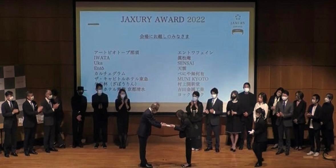 AUXCA.の空間シンボルとして、江戸時代に京都御所より仁和寺・金堂へ移築された日本古来の「美」が凝縮した“御扉”をモチーフとした「MITOBIRA」。元禄年間(1688 年)、京都・西陣において大寺院御用達の織屋として創業した「細尾」( JAXURY大賞受賞)に依頼し、1000年の時空を超えた意匠をモダンに再現。この御扉をシンボルに捉えた空間デザインを「タイムアンドスタイル」(JAXURY大賞受賞)により、JAXURY空間としてデザインと施工を依頼。また、京都宇治朝日焼十六世松林豊斎氏により仁和寺の土を使って作成した特別な器も作成。JAPAN’S AUTHENTIC LUXURYを体現する空間として、様々なブランドとのコラボレーションによる美の創造・JAXURY SPACEをお届けいたします。