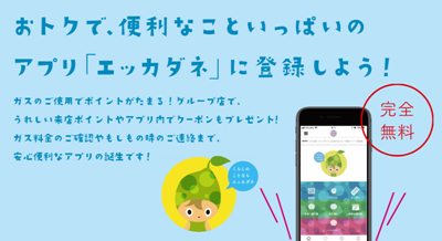 毎月のガスご利用やグループ店への来店でポイントが貯まり、ガス料金のご確認や、もしもの時のご連絡など、お客様にとって「安心便利、ちょっと楽しい暮らし」をコンセプトにしたアプリとしてスタートし、アプリ内でのキャンペーンや、エッカ石油グループ店でご利用いただけるクーポンなど、エッカ石油ガス契約者のお客様以外もご活用いただけるサービスを展開して参りました。