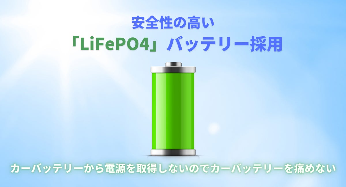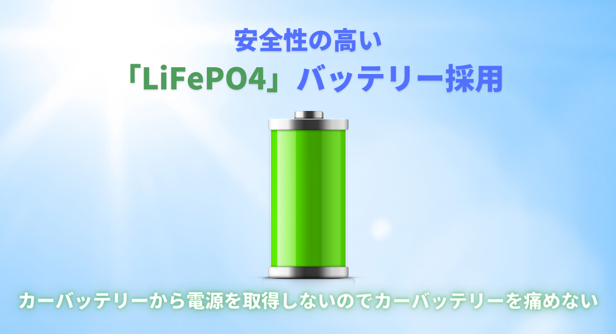 搭載バッテリー:LiFeP04 リン酸鉄リチウム(PSE認証取得済製品)