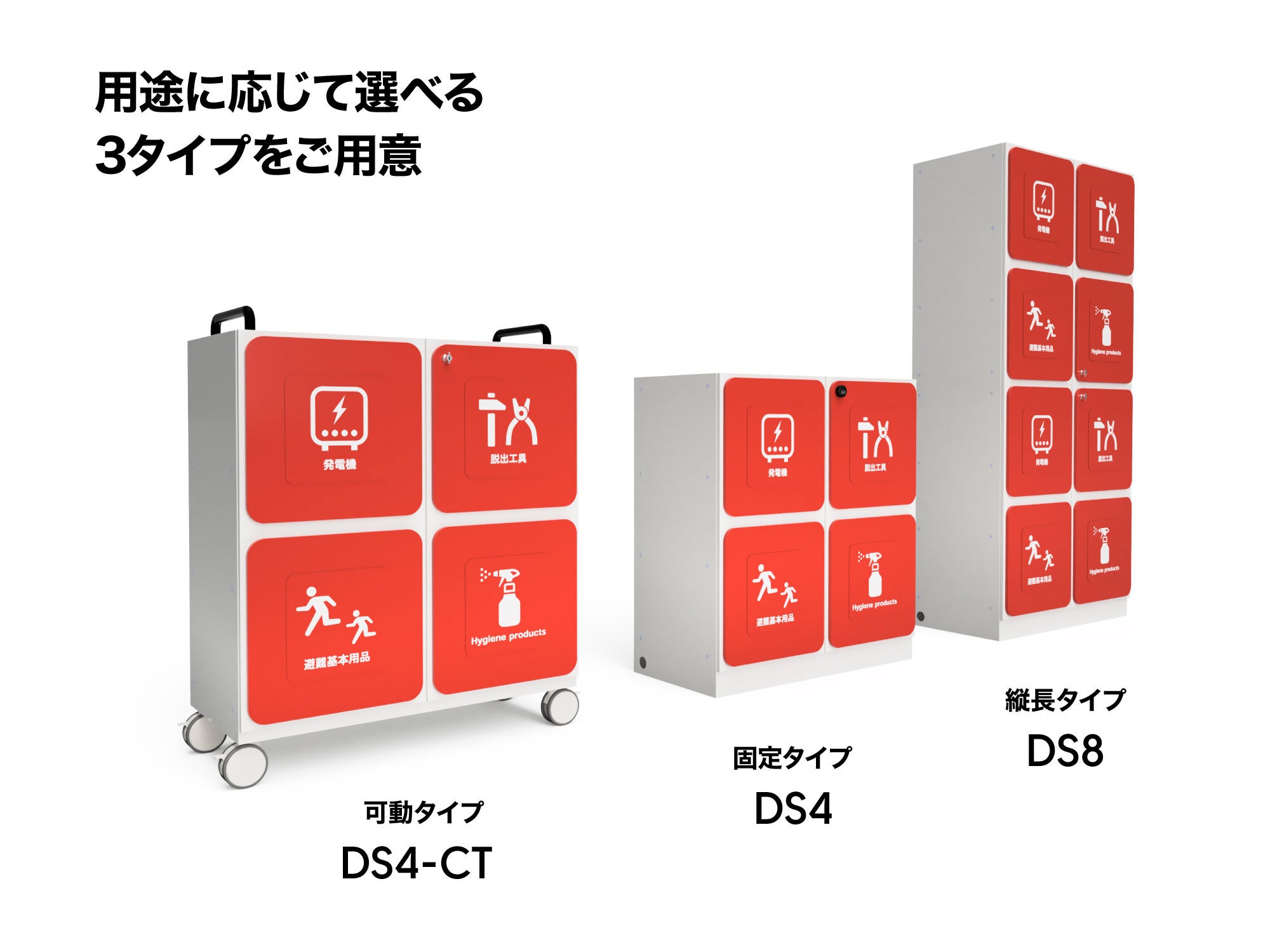 防災備蓄収納の専門ブランド「ストックストック」を展開する株式会社長田製作所(本社:大阪市平野区、代表取締役:長田隆幸)では、ストックストックの新型の「DSシリーズ」の販売を開始します。DSシリーズは「防災備蓄を見える場所に置く」をコンセプトにして、BCP計画では重要となる、災害発生後すぐに行う「防災組織の立上げ用物品」が収納できるようにしています。扉のアイコンにより探す必要がないデザインのためスムーズな防災活動を行うことができます。さらに設計や製造方法を見直すことで、既存製品より40%の値下げを実現し導入しやすくなりました。2022年10月5日から7日までの開催の危機管理産業展2022で初お披露目します。