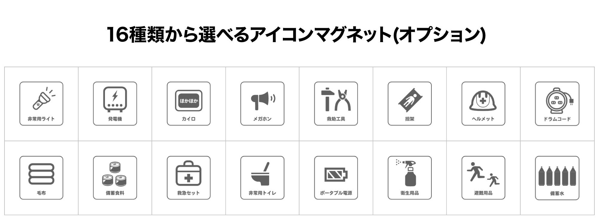 - 16種類から選べるアイコンマグネット(オプション)