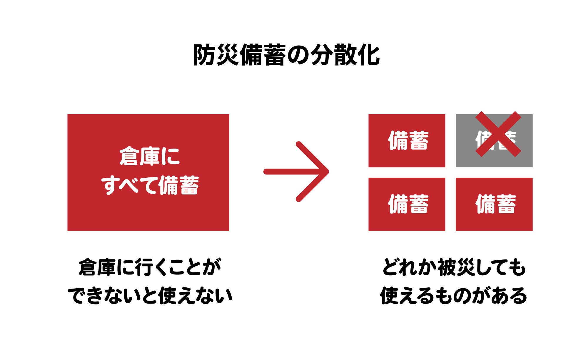 - ストックストックが提唱する防災備蓄の分散配置について