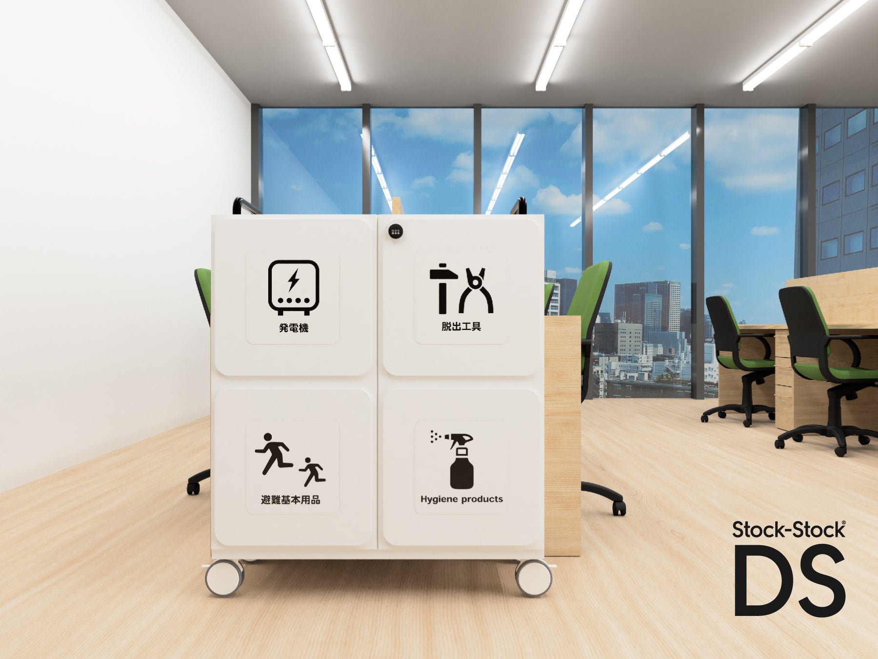 企業やマンションの災害初動対応をスムーズに!すぐに使う防災備蓄をスマートに備蓄。見せる防災備蓄庫「ストックストックDS」が新登場。