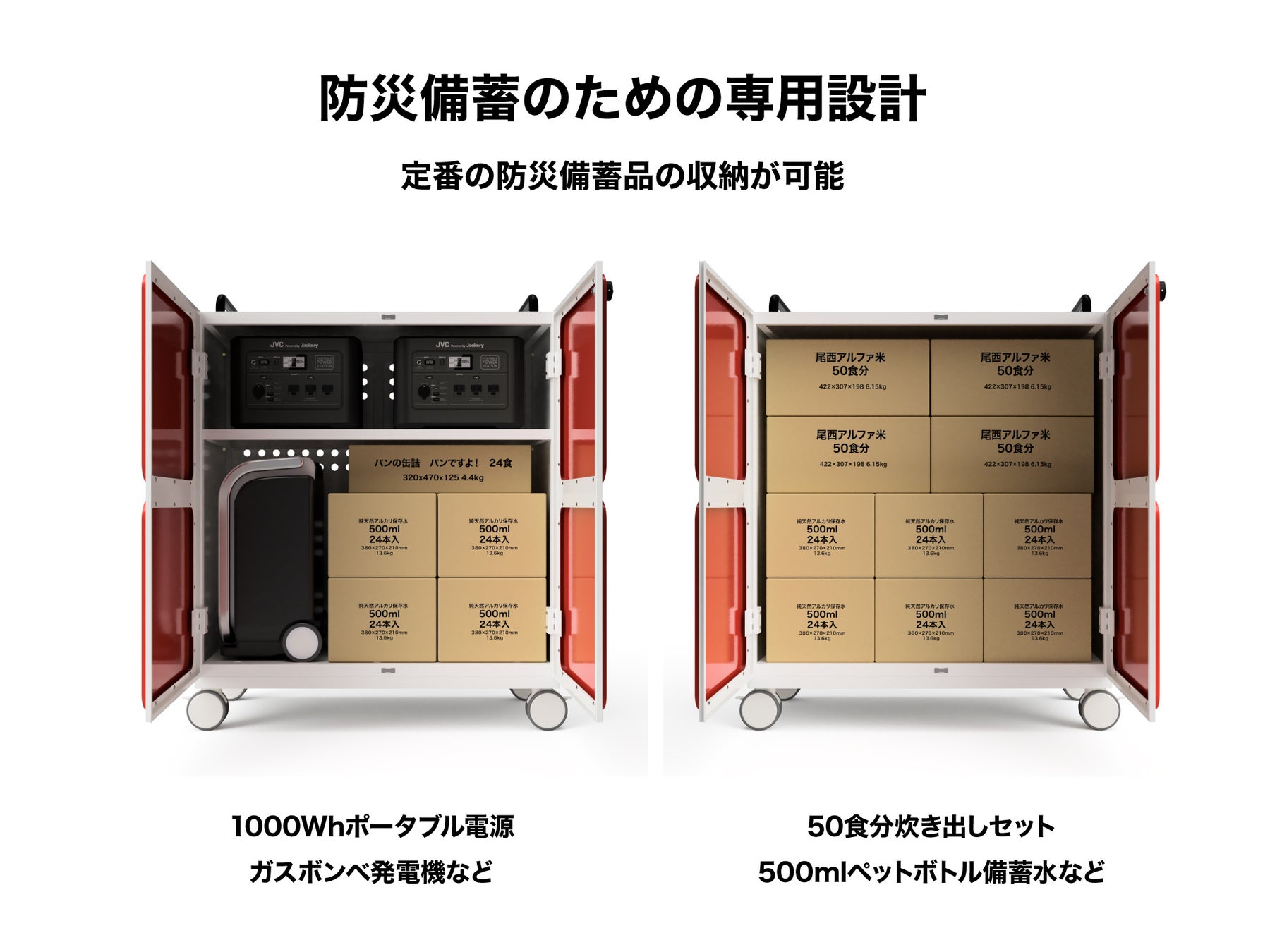 - 製品の特徴2:人気の防災備蓄品をダンボールのまま収納できる
