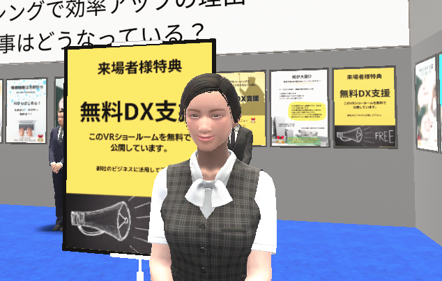 このオンラインショールームはインターネット内に構築され1社独占で無料で利用する事ができます。新製品公開などキャンペーンで販促活動を行う場合は、同社が開催する「メタ展」というオンライン展示会に参加する事ができます。作成したバーチャルショールームと「メタ展」は連動しており展示会場より自社の作成したバーチャルショールームに誘導する事ができます。