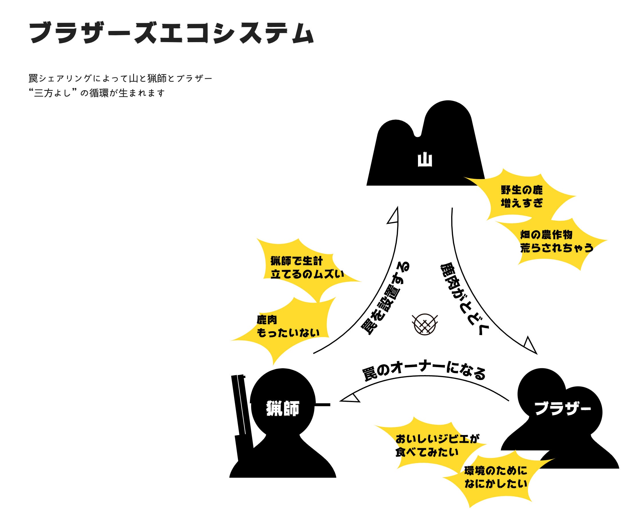 罠シェアリングによって山と猟師とブラザー “三方よし” の循環が生まれます