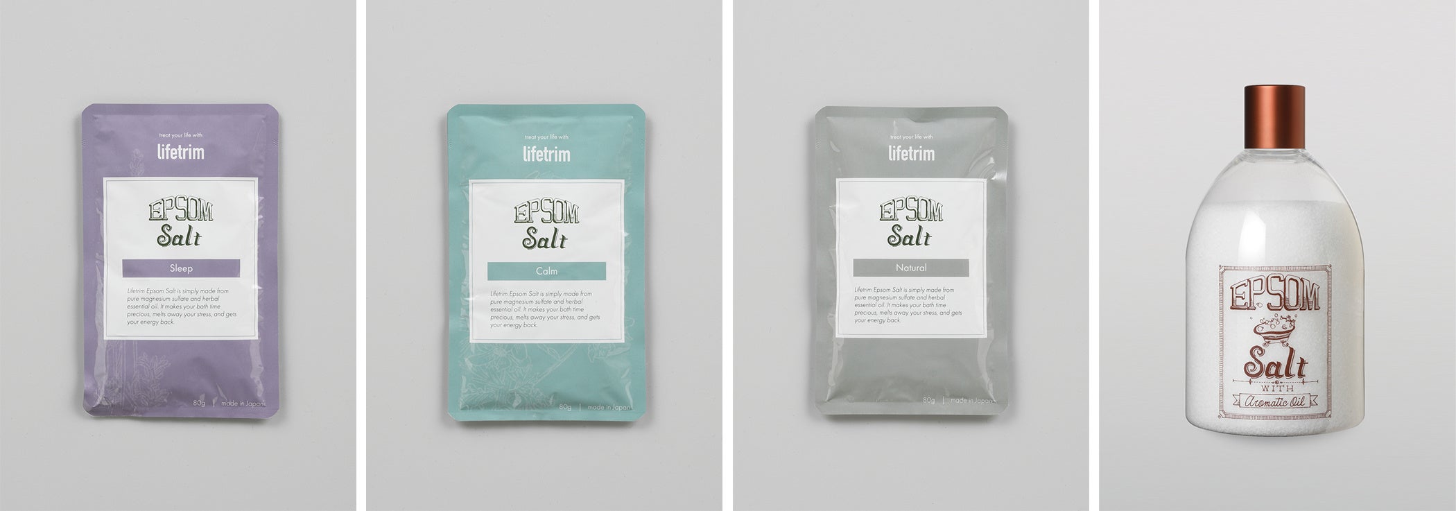 ライフトリム・アロマエプソムソルトは、⾼純度の⾷品グレード硫酸マグネシウムと100%天然由来のエッセンシャルオイルだけで造られた、余計なものを⼀切含まない純国産の⼊浴剤です。エプソムソルトをいれたお湯で⼊浴することにより、エプソムソルト⾃体のミネラル成分であるマグネシウムが経⽪吸収され、⾝体のミネラルバランスをサポートします。