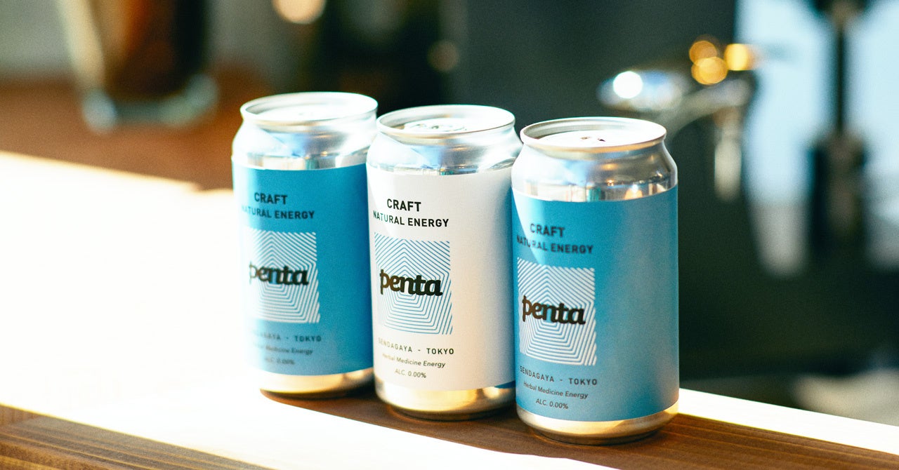 pentaは食材から得られる天然のエナジー成分を主原料としたカフェインや白砂糖を使わない身体に優しいエナジードリンクです。脳の活性化・リフレッシュ・覚醒をキーワードに厳選した自然素材の効能を生かすオリジナルブレンドの薬膳シロップを、割ものを選んでカスタムオーダーいただきその場でアルミ缶に充填してご提供します。