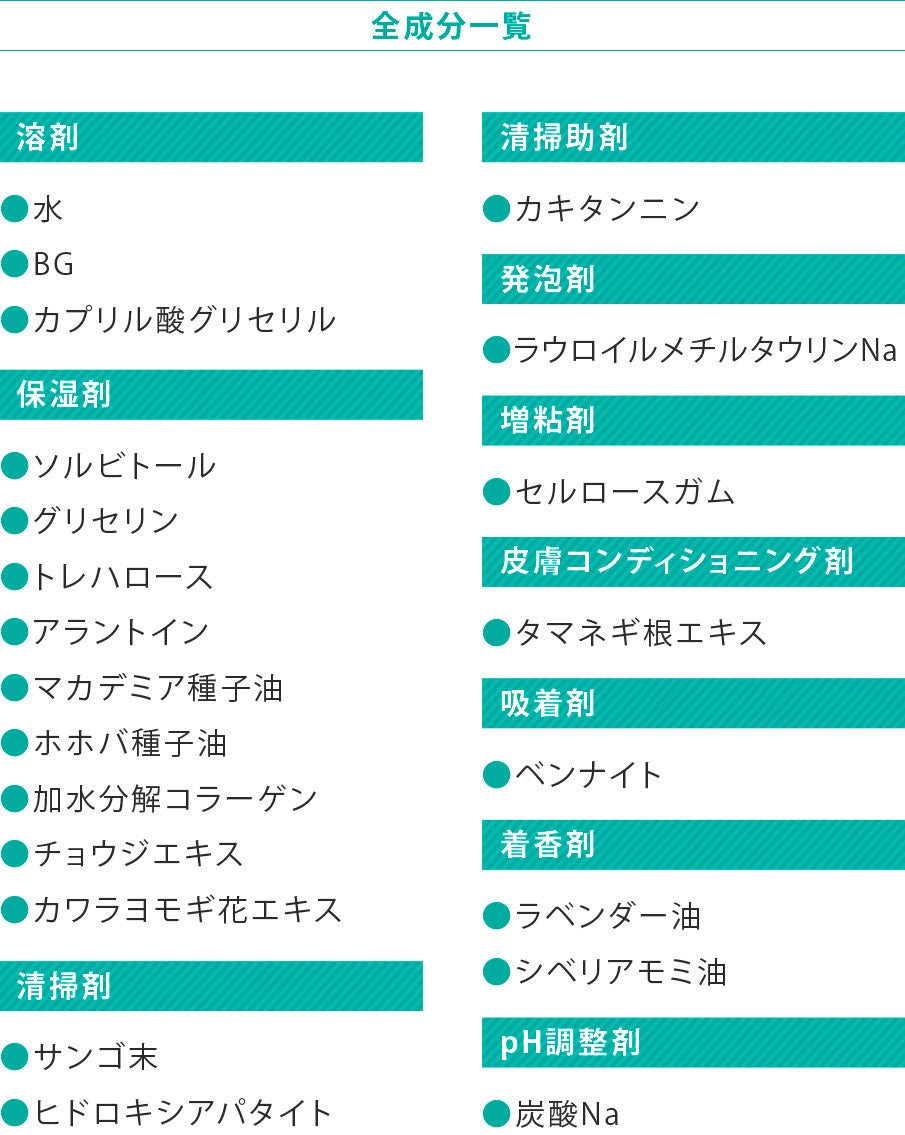 カワラヨモギ花エキス、チョウジエキス、ホホバ種子油など9種の潤い成分を配合し、洗い流した後もうるおいが続きます。