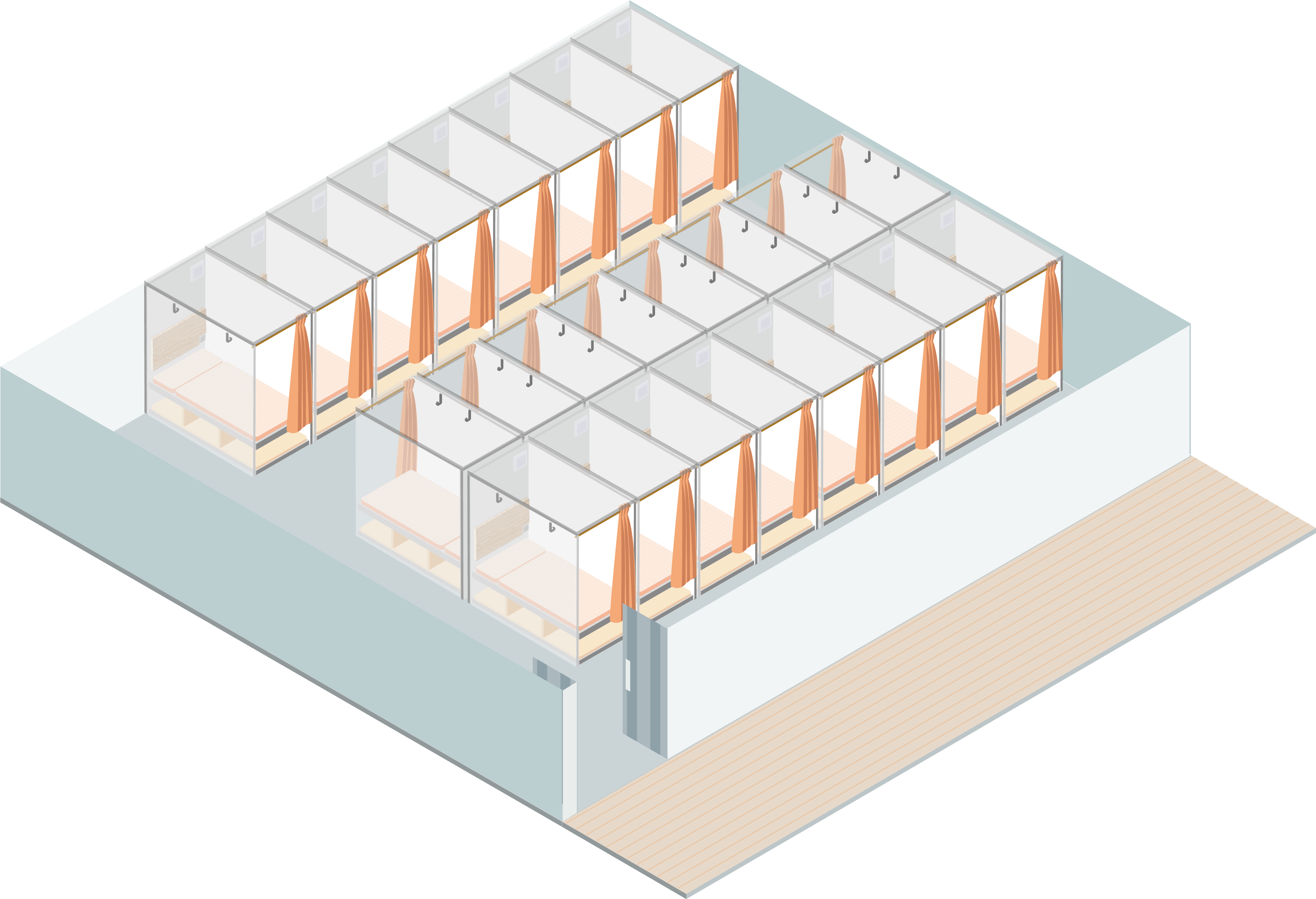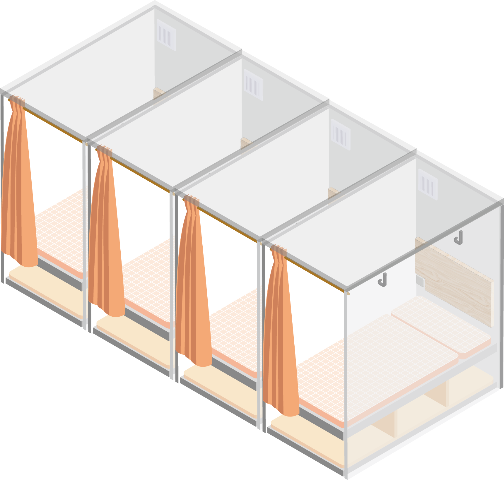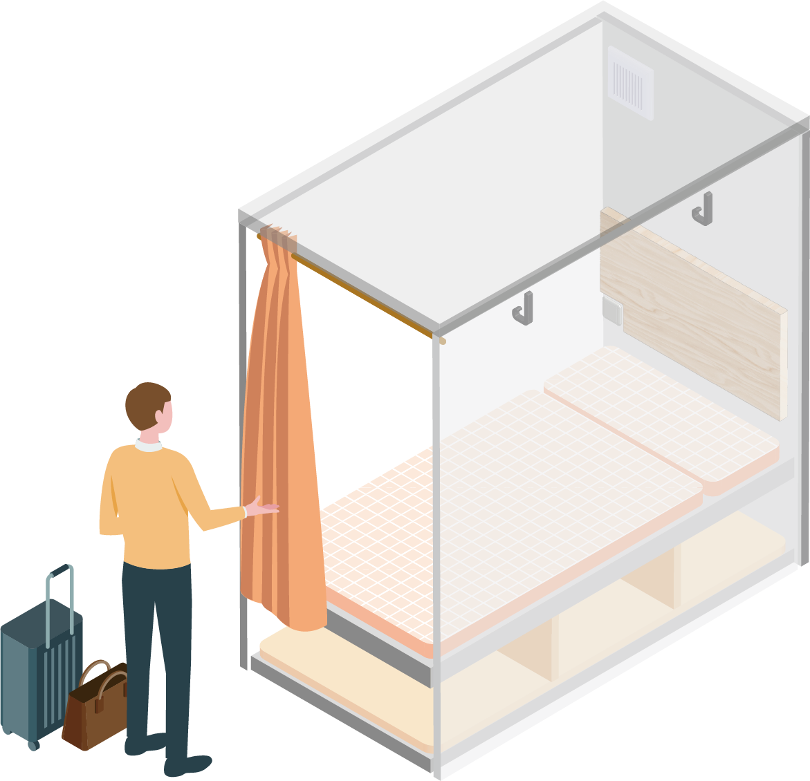 それまで大部屋に雑魚寝をしたり、2段ベッドを並べて寝たりといった仮眠環境にカプセルベッドを導入することで、合理的な配置による省スペース化、個室のようなプライバシー空間の確保、遮音性の向上など、施設の最適化や睡眠環境の改善が見込まれます。特に最近ではお互いが隔壁で囲われているカプセルの特性から、新型コロナウィルスの感染防止対策として注目され、導入についてのお問い合わせが増えています。
