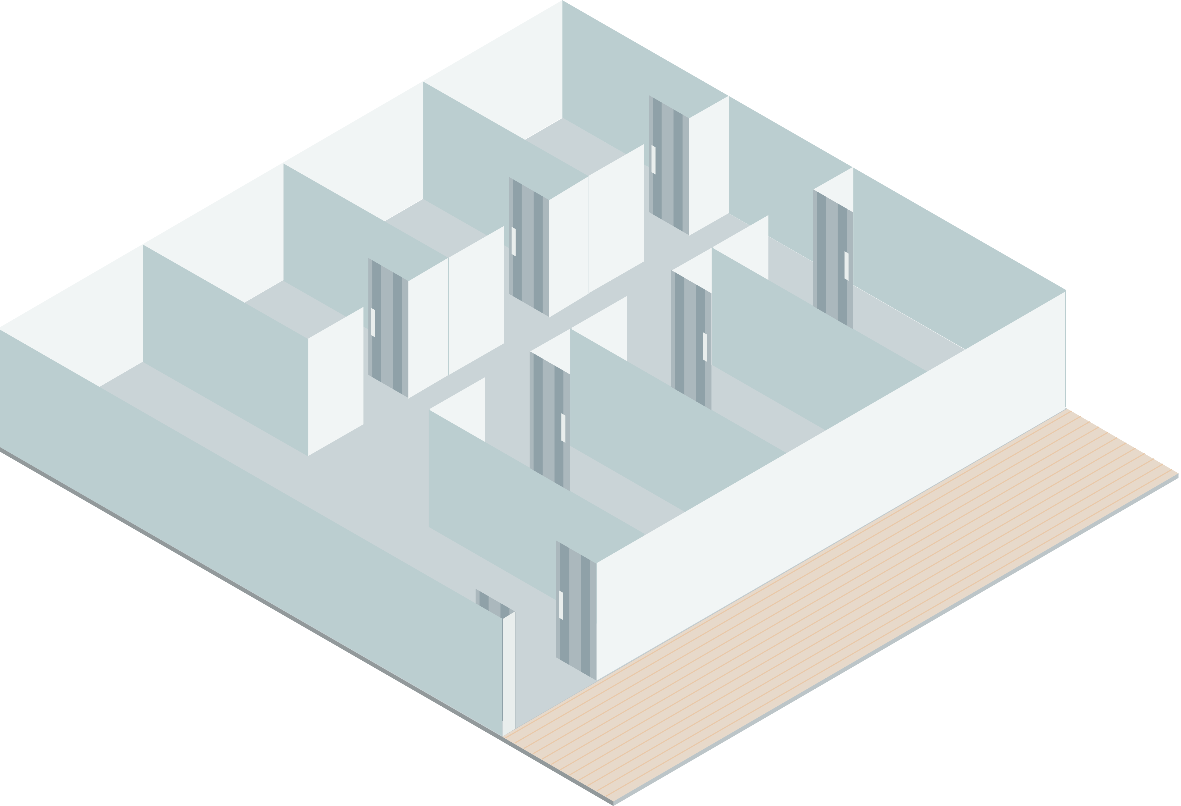 ユニットタイプの【SQUARE SPOT】では、既存のお部屋で組立設置をするだけで大掛かりな工事を行うことなく、個室のようなプライベート空間を安価に整備することが可能です。また、デスク・ロッカー・ベッド機能を1ユニットに集約しているので省スペース化が図れ、収容人員の増加、または浮いたスペースを他の用途として使用することも可能です。