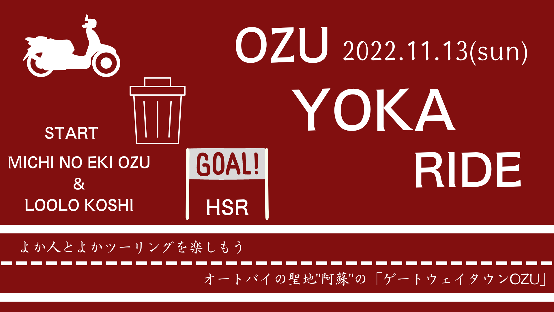 11月7日(月)~13日(日)「OZU BIKE WEEK」のほか、初代ミニスカポリスの福山理子氏とのツーリングイベント「よかライド」など開催。「大津町からいもフェスティバル」も同時開催。