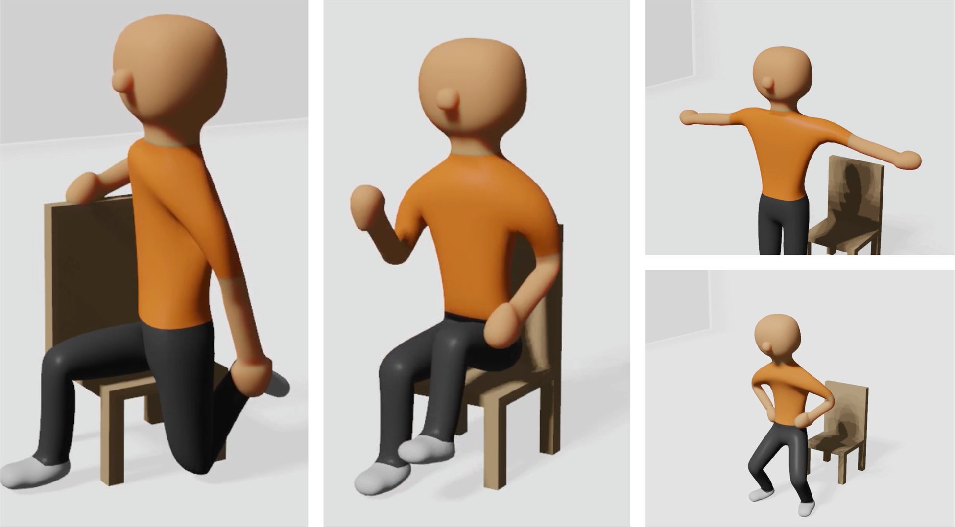 高齢者の直感的な運動内容理解を実現するために、3Dアバターによる運動支援を採用しました。利用者はデバイスに映し出される3Dアバターの動きを真似することで、スムーズに日々の運動を行うことができます。