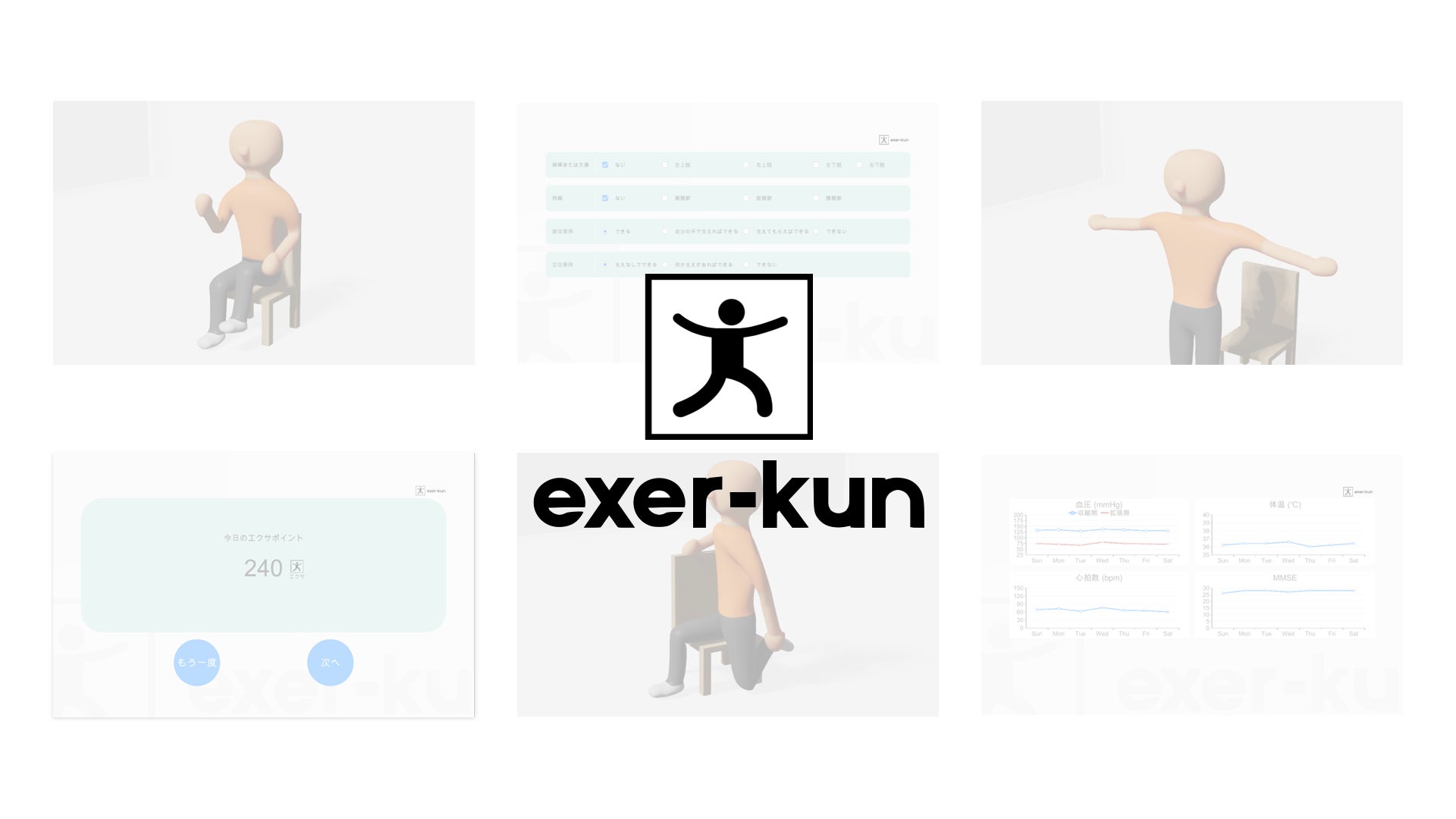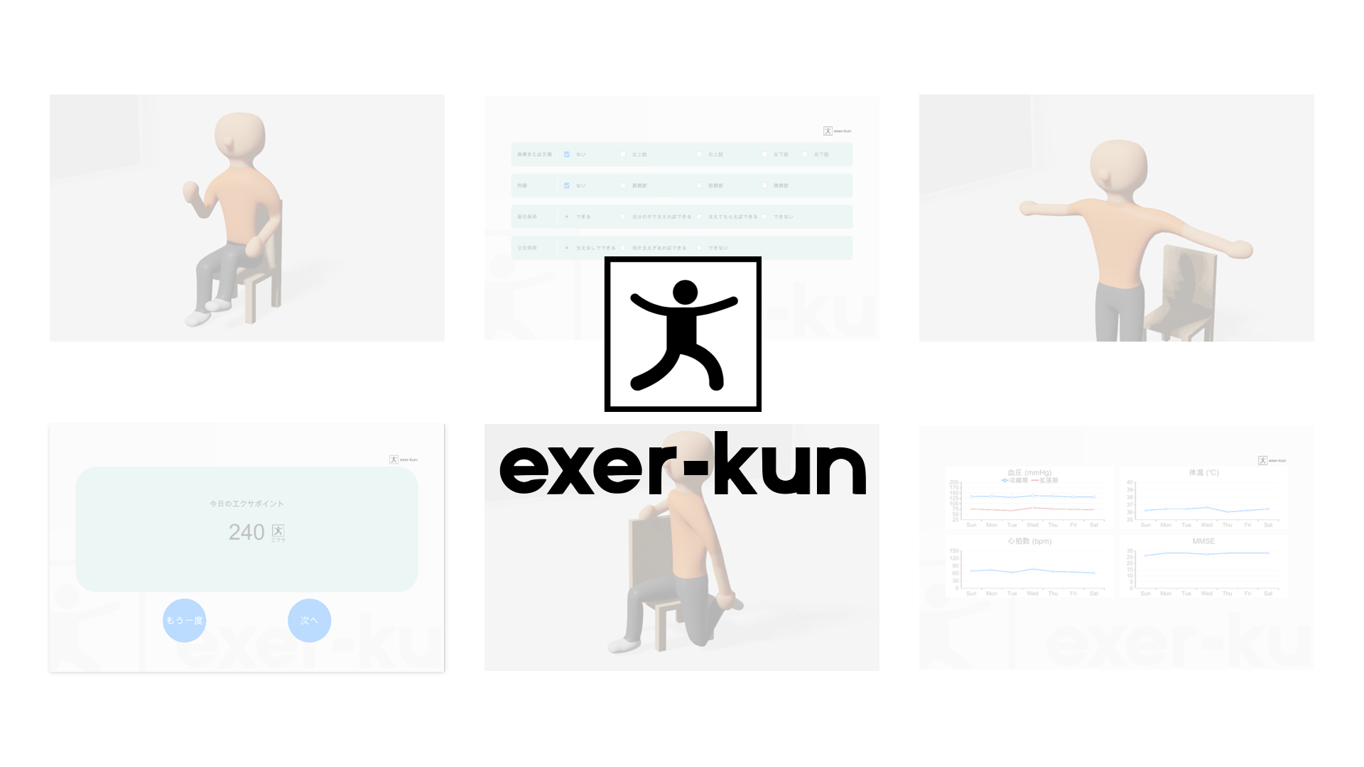 exer-kunは、高齢者の身体機能・生理機能に沿って最適な運動プログラムを提案し「3Dアバターによる直感的でわかりやすい運動支援」を実現するAIアプリケーションです。
