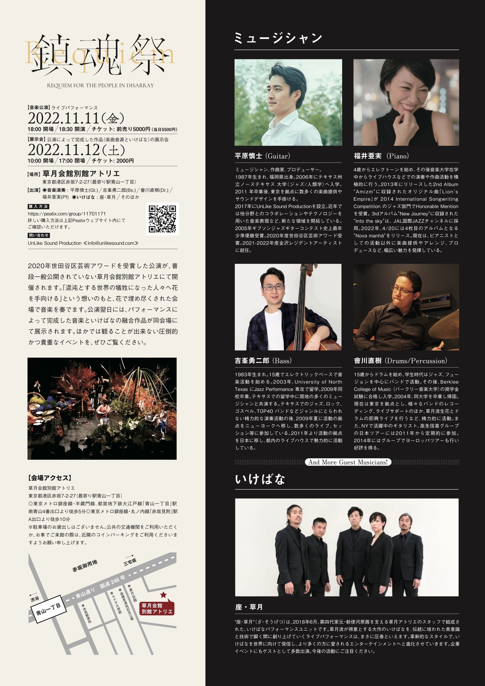 「鎮魂祭 -Requiem for the People in Disarray」平原慎士が代表を務めるUnLike Sound Productionが草月会館別館アトリエにて音楽公演及び展示会を開催