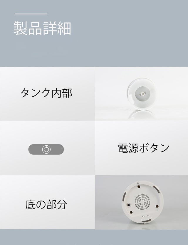 【素材】上質なABS材料を採用した水タンク、水タンクに直接アロマエッセンシャルウォーターを入れたり、また、水を入れてエッセンシャルオイルを3~5滴入れてご使用ください。3秒で豊かな香りが広がり、潤いと香りの相乗効果で、充実な休憩時間を過ごせます