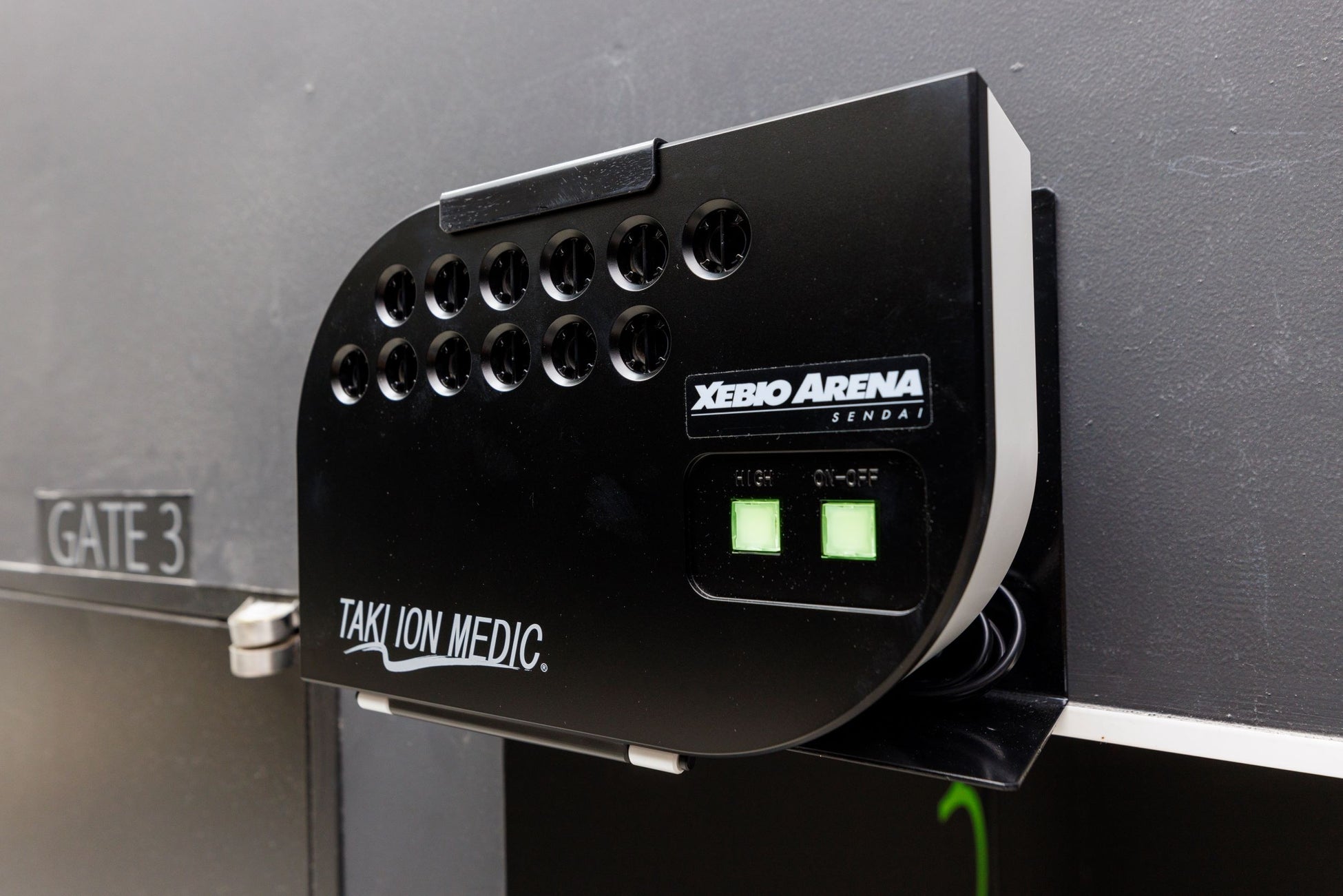 「仙台89ERS」のスポンサーとして3期目となります。コロナ禍において、選手・スタッフ・ブースターの皆さんは日ごろから感染には気を付けられていたことでしょう。その中で、ゼビオアリーナでの観戦時は席を1席開けて座るなどしていても、やはり自分も含めブースターの皆さんは気にしていたと思います。もちろん選手・スタッフ・関係者の皆さんも同様だと想像に難しくありません。スポンサーとしてゼビオアリーナへは訪れる機会が増えていた中、弊社のTAKI ION MEDIC が何か力になるのであれば、と小池館長とお話をさせていただきました。ゼビオアリーナに設置することでお客さまが安心して来場でき、帰宅後に「また行こうね」となるようなアリーナづくりに寄与できればいいなと設置をご提案しました。