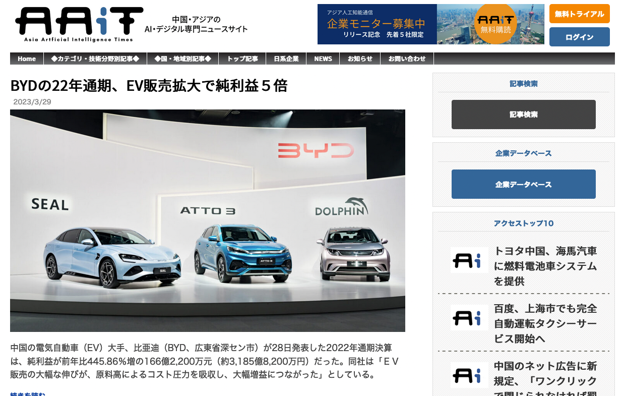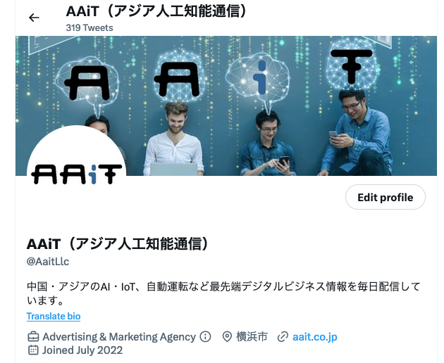 アジア人工知能通信合同会社(本社:横浜市中区、代表:吉沢健一)は、中国・アジアのAI・デジタル専門ニュースサイト「AAiT」をリリースいたしました。「デジタル・チャイナ」で変革する中国・アジアの経済社会の姿のほか、AIや自動運転など先端技術開発企業の情報を毎日配信します。