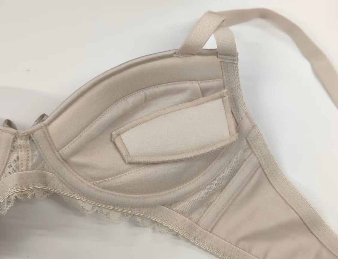 3枚接ぎポケットに細長パット入りで、お好みでカップ厚みを調整可能。