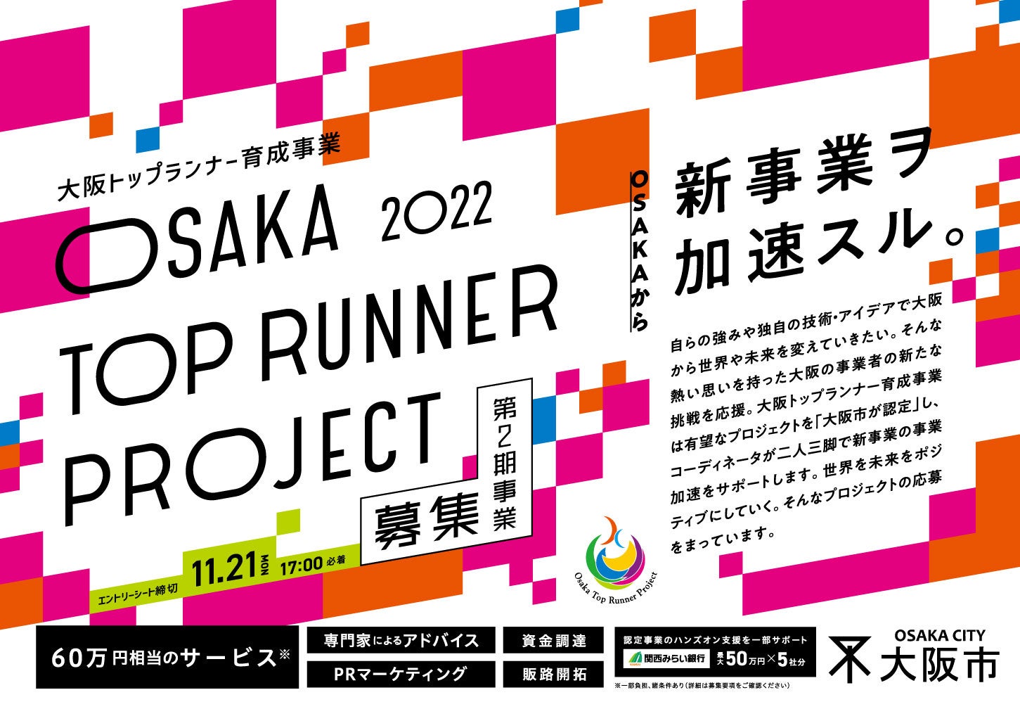 累計106件が認定!大阪市による「大阪トップランナー育成事業」プロジェクト募集開始!(2022年11月21日締切)