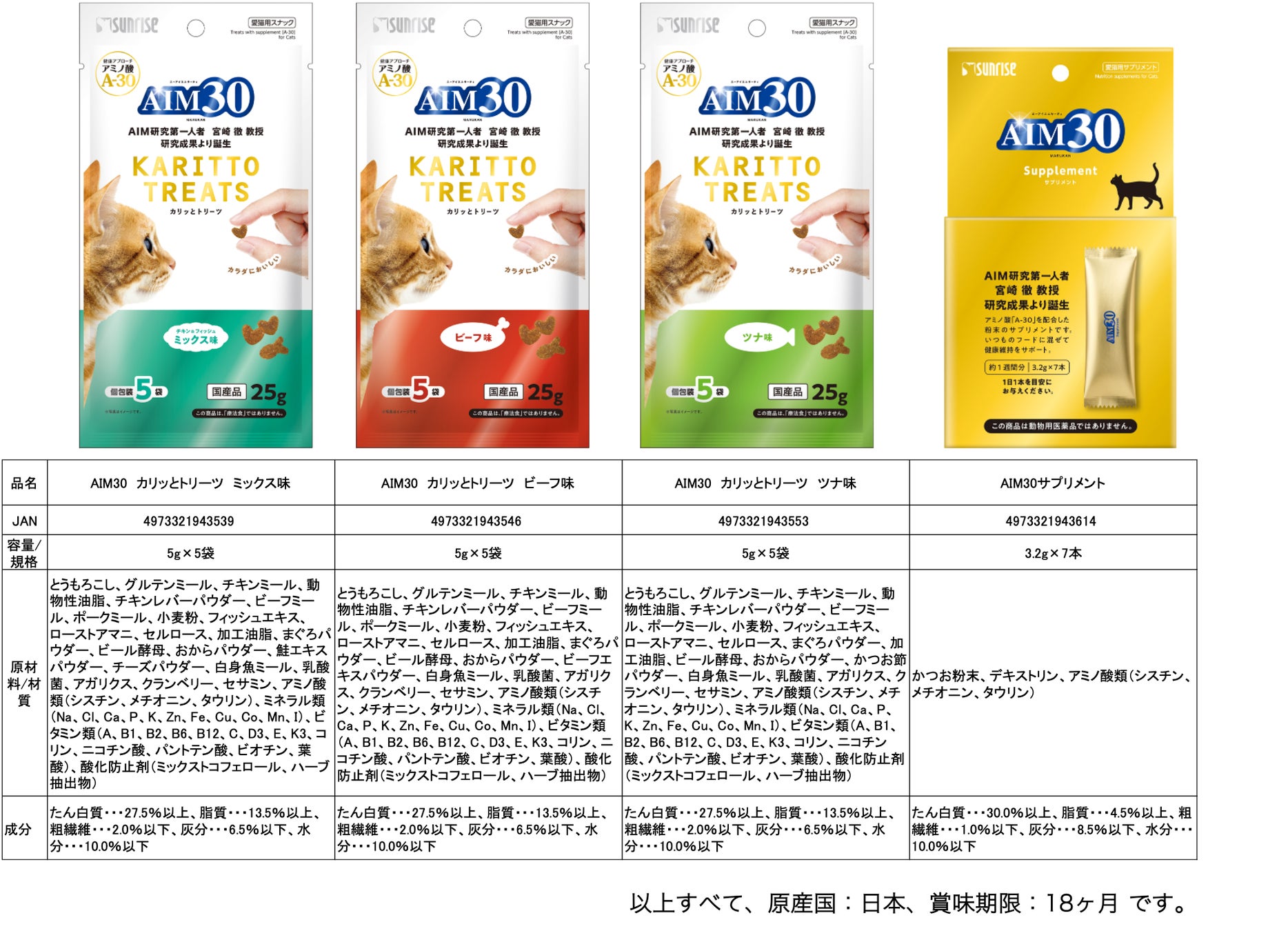 - トリーツ「AIM30」・サプリメント「AIM30」 新商品概要