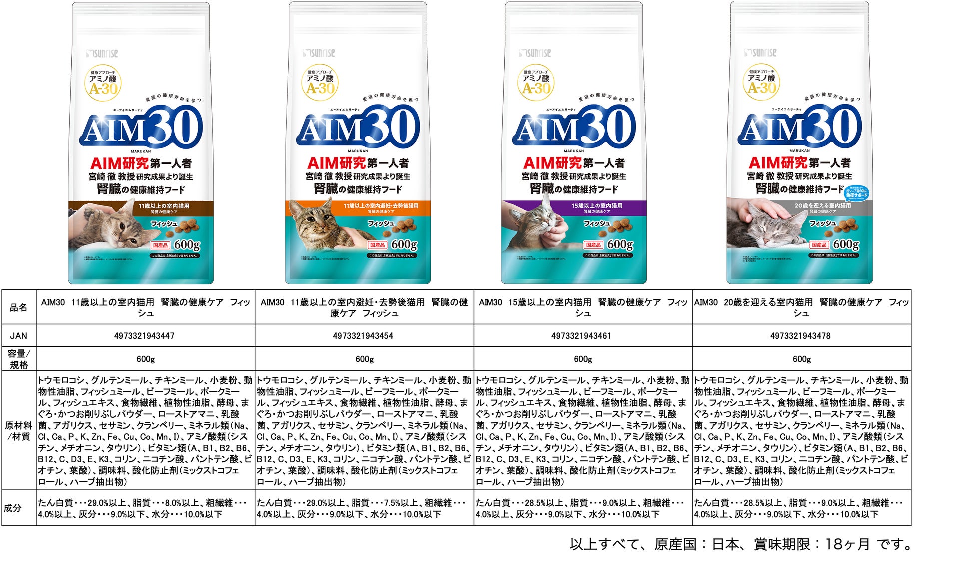 株式会社マルカン(本社:大阪市淀川区/代表取締役社長:松本幸彦)は、アミノ酸「A-30」を配合した、猫の健康維持をサポートする総合栄養食「AIM30(エーアイエムサーティ)」の新商品を発売、9月26日(月)より出荷開始いたしました。