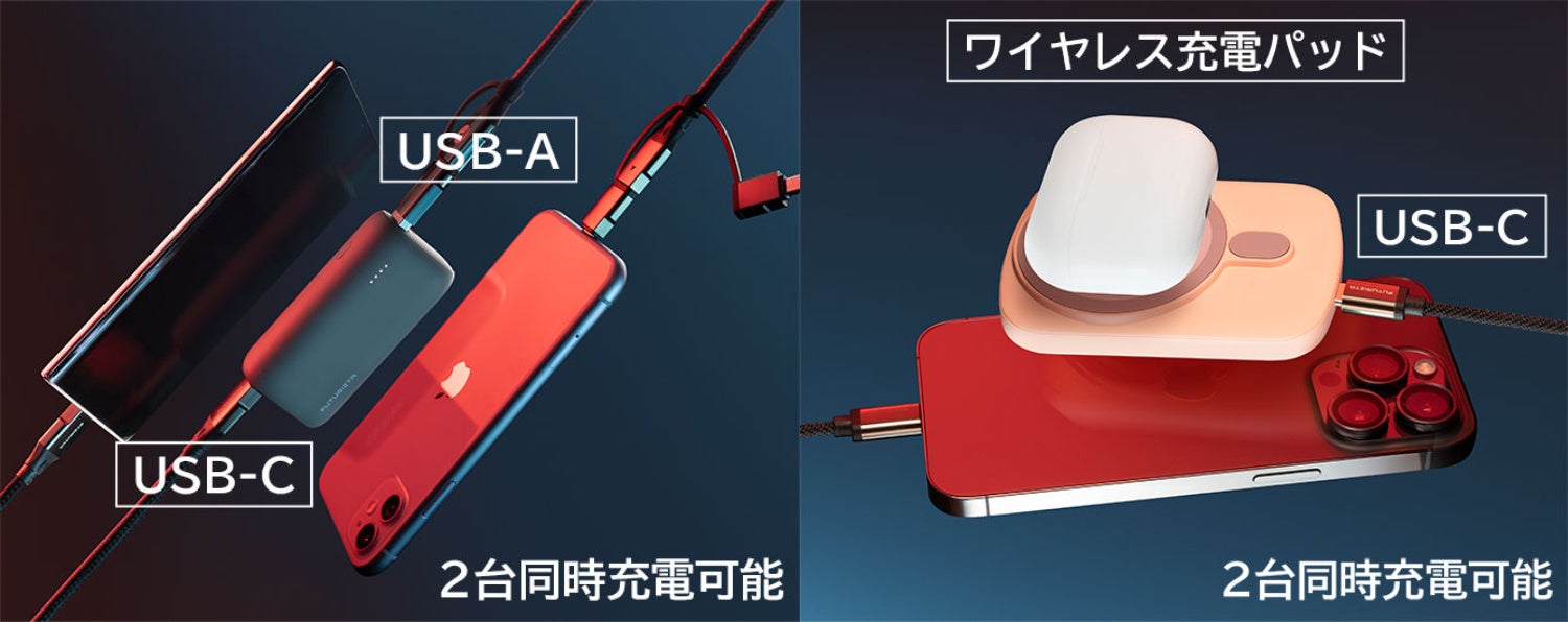- POINT3 最大出力20wで2台同時充電