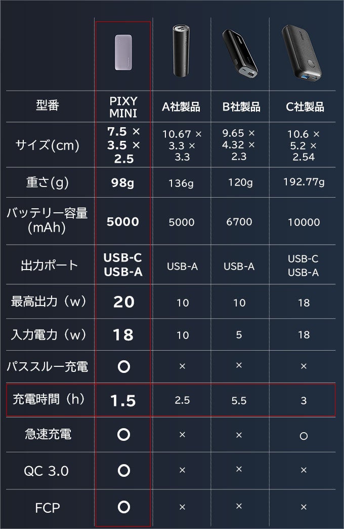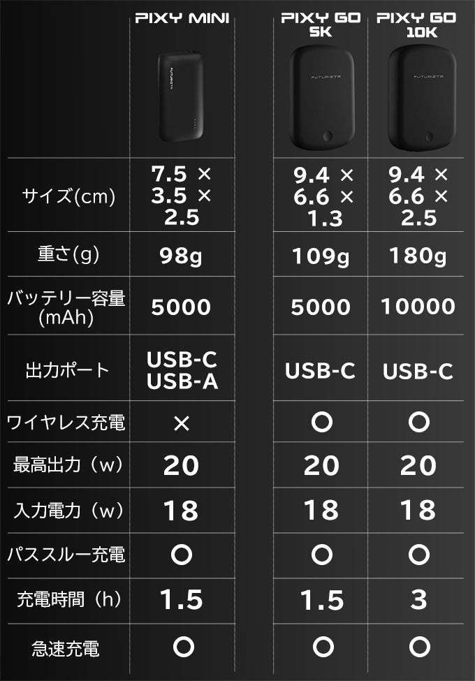 極小98gのPixy Mini、ワイヤレス充電できるPixy Go ライフスタイルに合わせて選べる2つのモバイルバッテリー