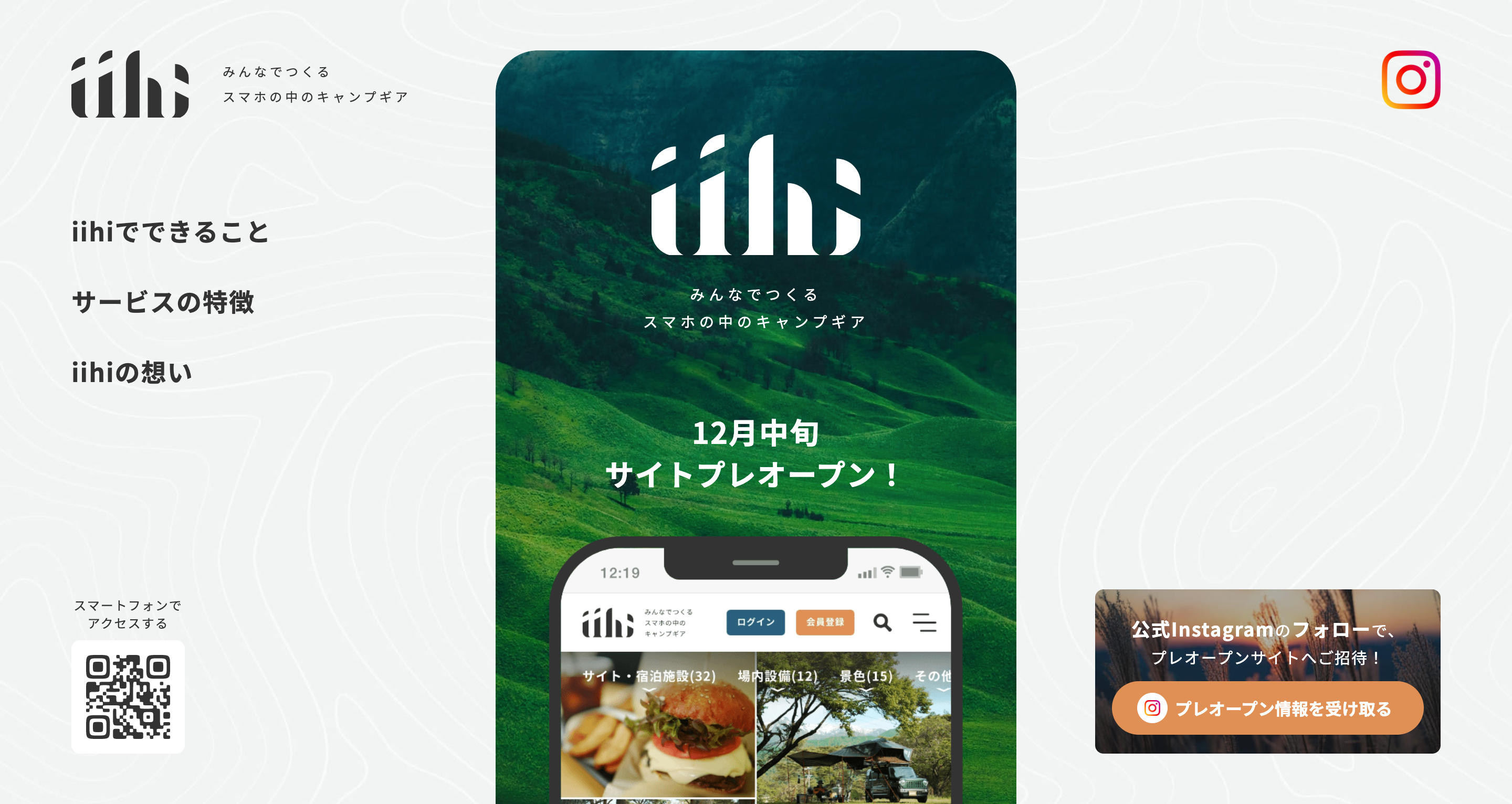 検索では出会えないキャンプ場にリーチできる! キャンプポータルサイト「iihi(いい日)」プレオープンへのご招待キャンペーン実施中