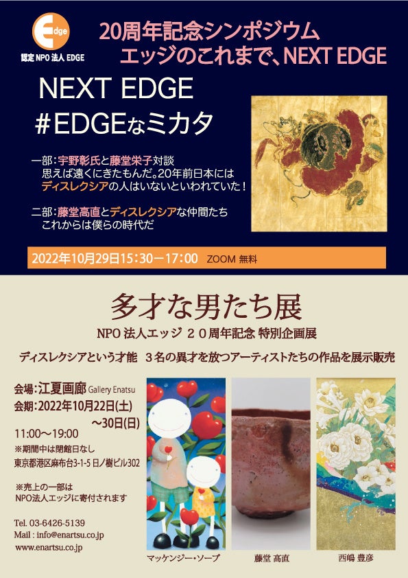 この度、東京都港区の認定NPO法人EDGE(エッジ・会長:藤堂栄子)は、文字の読み書きに困難を抱える学習障害のひとつであるディスレクシア当事者が制作した記念絵画展および、シンポジウムを実施することになりました。
