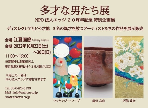 ディスレクシアという才能 マッケンジー・ソープ、西嶋豊彦、藤堂高直、3名の異才を放つアーティストたちの作品を展示販売『多才な男たち展』