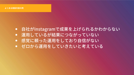 企業様の抱えられる課題や目的達成に向け、Instagram活用の向き不向きを調査します。