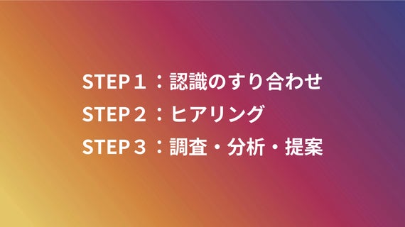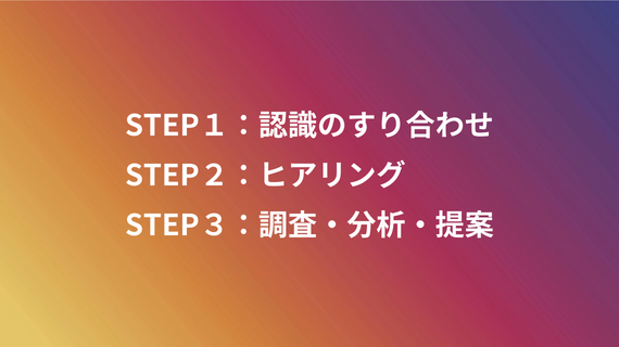 お申込み後、これまで中小企業様のSNS活用をゼロから支援してきた弊社より3つのSTEPで実施いたします。