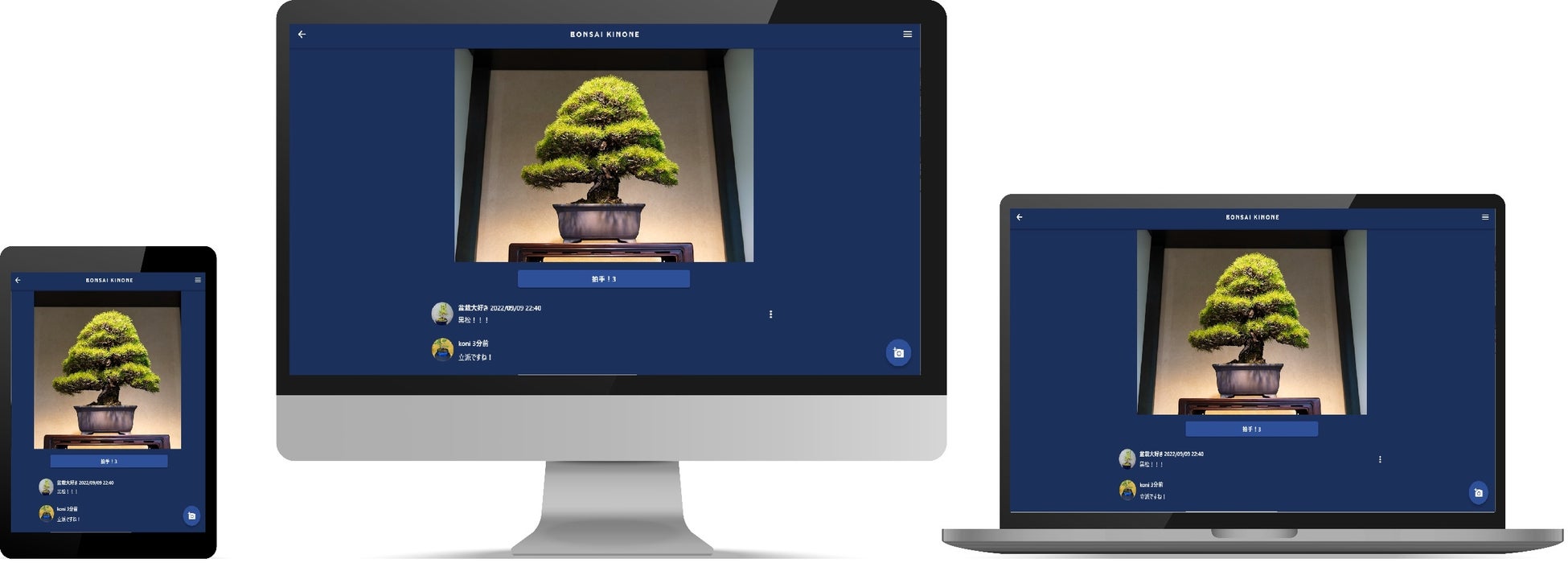 株式会社キノネは盆栽愛好家が集えるコミュニティデザインSNS 「BONSAI KINONE」(https://bonsai.kinone-glb.com/)を9月末にスタートしました。