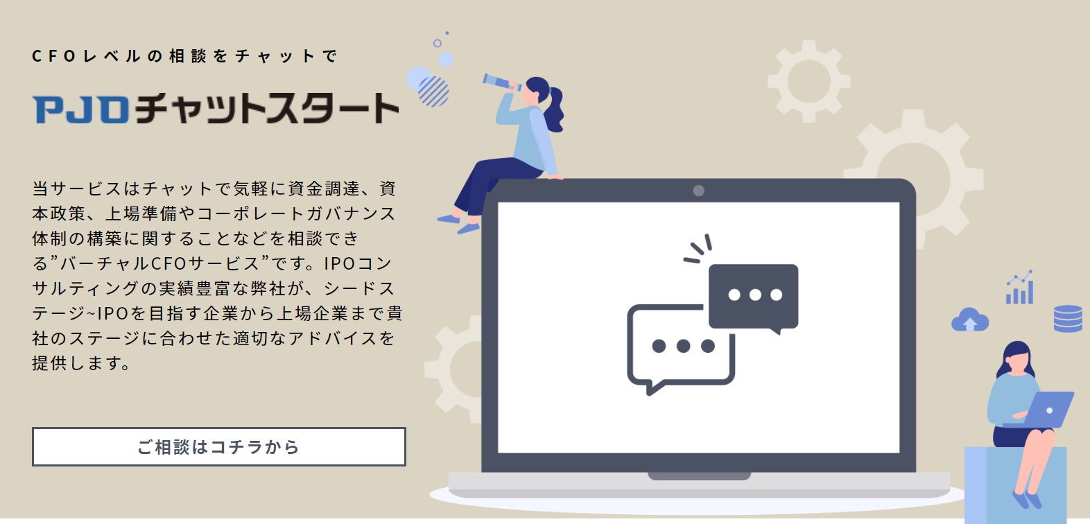 上場準備や資金調達に関する悩みを気軽にチャットで相談!バーチャルCFOサービス「PJOチャットスタート」が2022年10月19日(水)より提供開始