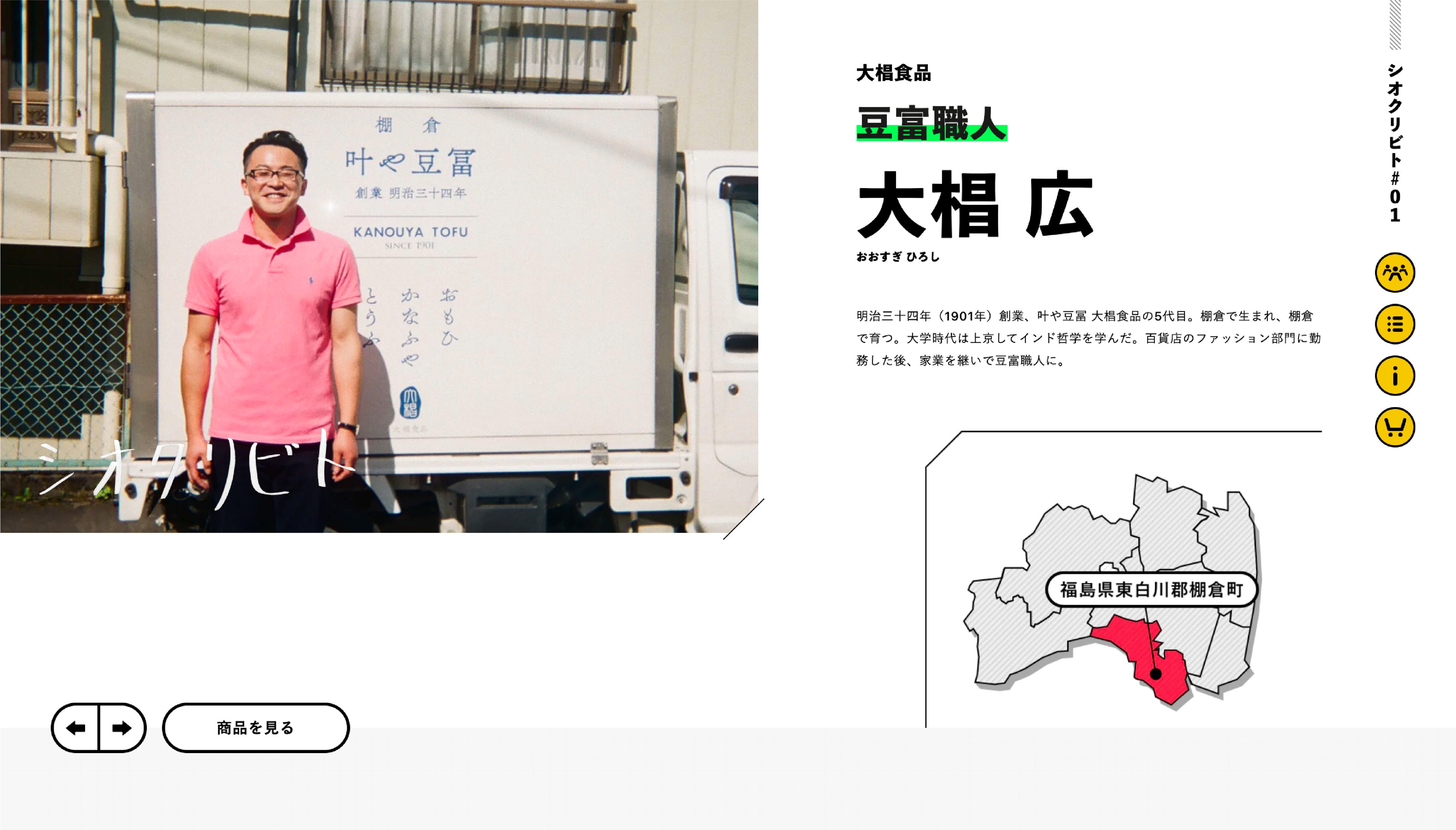- 生産者の人柄への共感を意図し、生産者の何気ないエピソードからはじまるページ構成を徹底。