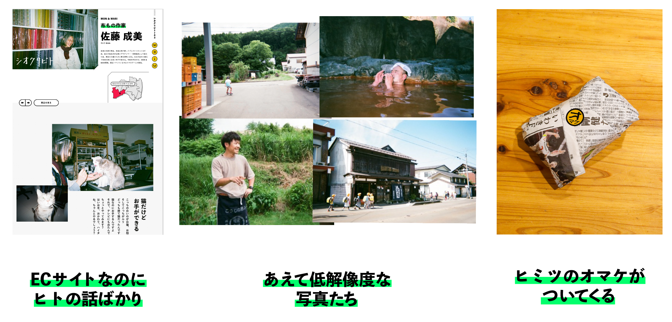 - 親近感を感じてもらえるよう、プロカメラマンではなく取材スタッフが使い捨てカメラで撮影した写真を活用。