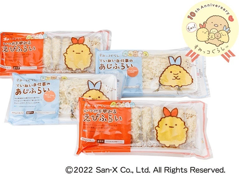 ”アジフライカンパニー”を謳う(株)角屋食品(本社:鳥取県境港市、代表取締役:角谷直樹)は、すみっコぐらし™の10周年を記念して、すみっコぐらし™のキャラクター、えびふらいのしっぽとのコラボレーションをスタートいたします。