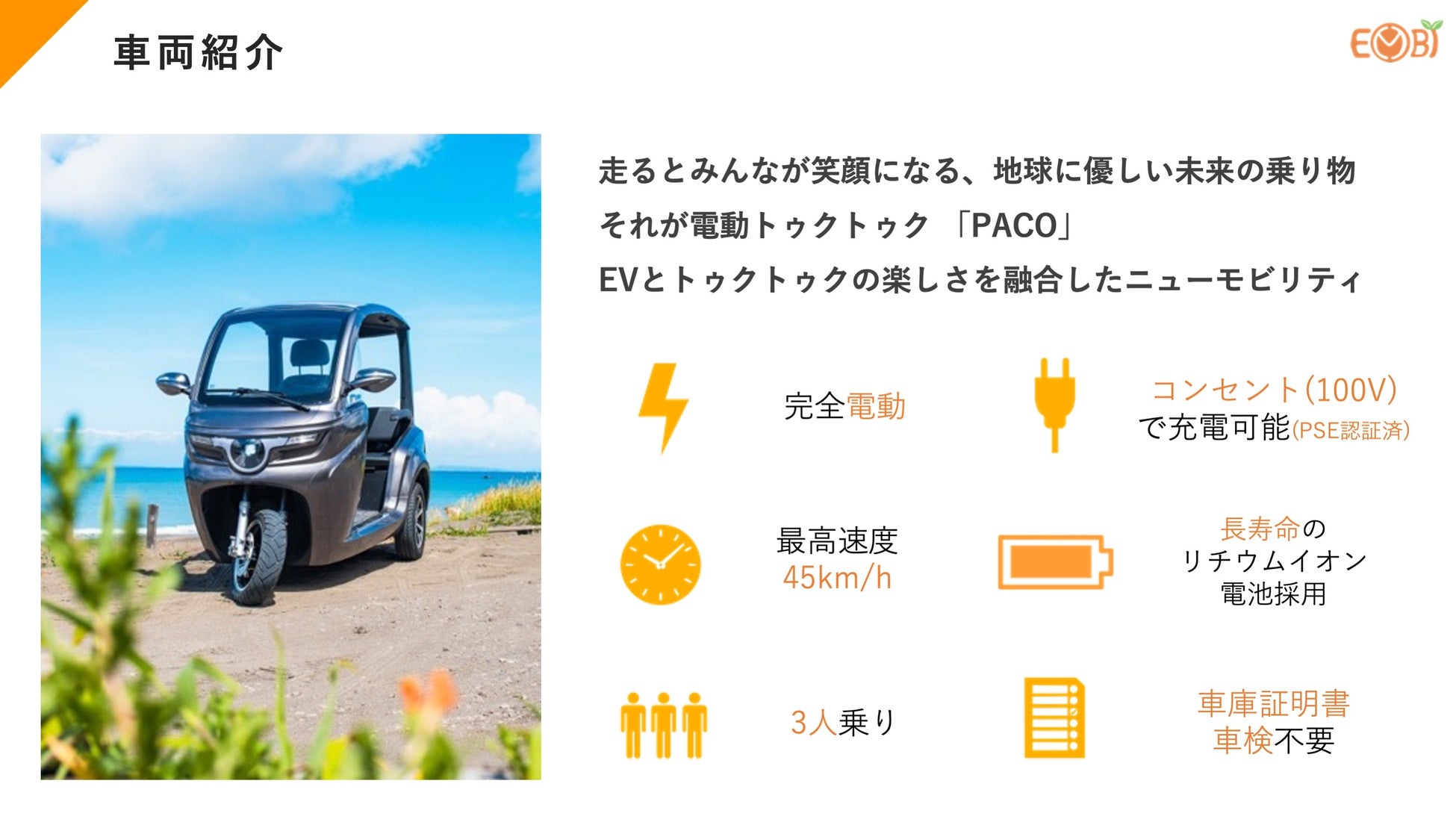 - 車両紹介 電動トゥクトゥク「PACO」