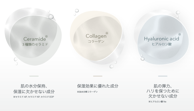 ※セラミドAP,セラミドNP,セラミドEOP,加水分解コラーゲン,ヒアルロン酸Na